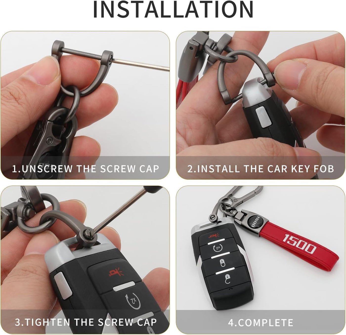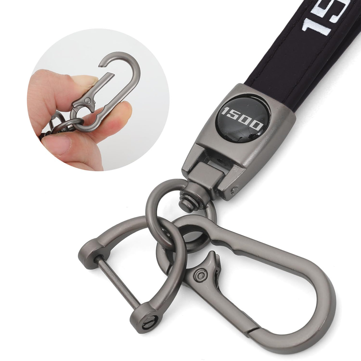 LINOAH Key Chain for Ram 1500 Leather Car Keychain, Compatiable With Dodge Ram 1500 Accessories, Black Key Chain with 360 Degree