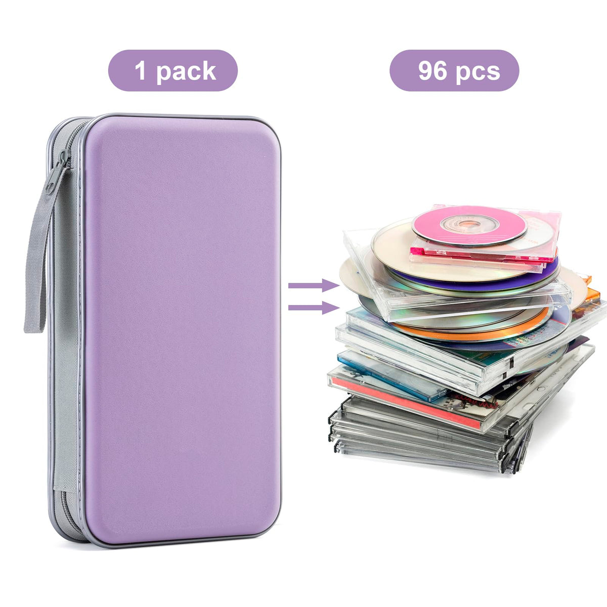 Liovode Dvd Case, 96 Capacity Cd Case Portable Cd Case Holder Storage Hard Plastic Dvd Cd Wallet Holder Organizer For Car (Laven