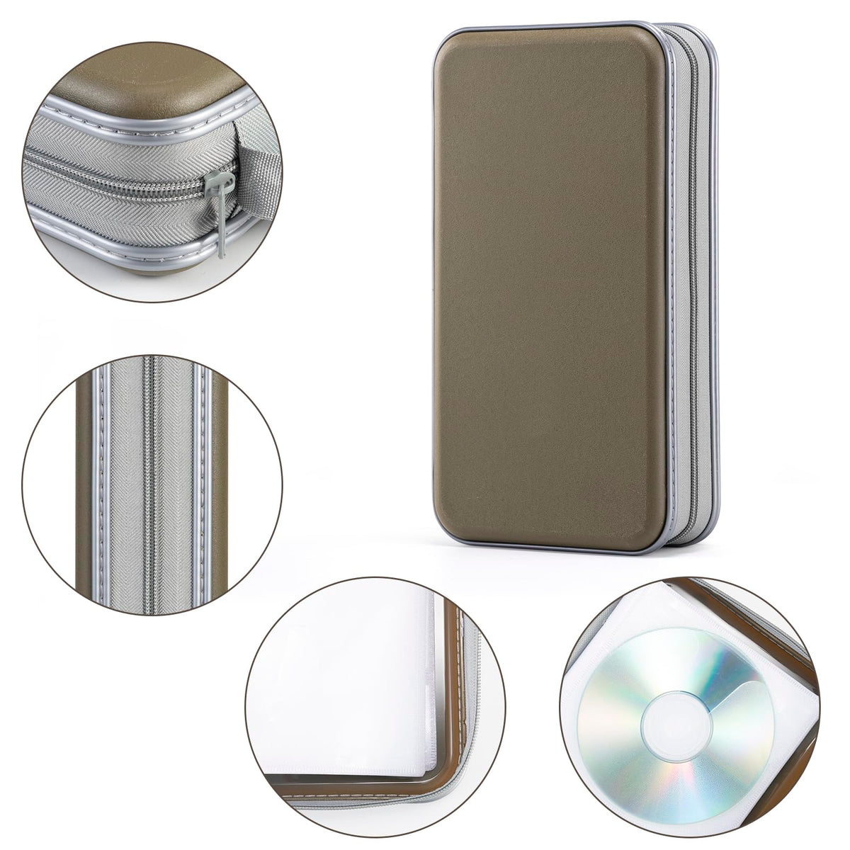 Liovode Dvd Case, 96 Capacity Cd Case Portable Cd Case Holder Storage Hard Plastic Dvd Cd Wallet Holder Organizer For Car (Olive