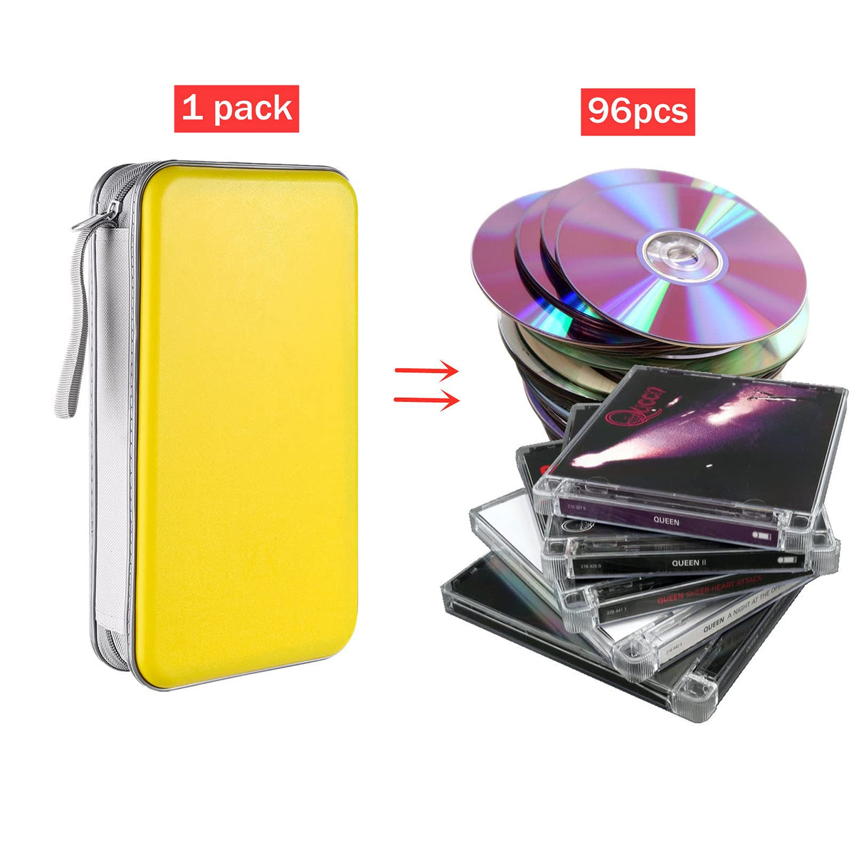 Liovode Dvd Case, 96 Capacity Cd Case Portable Cd Case Holder Storage Hard Plastic Dvd Cd Wallet Holder Organizer For Car(Yellow