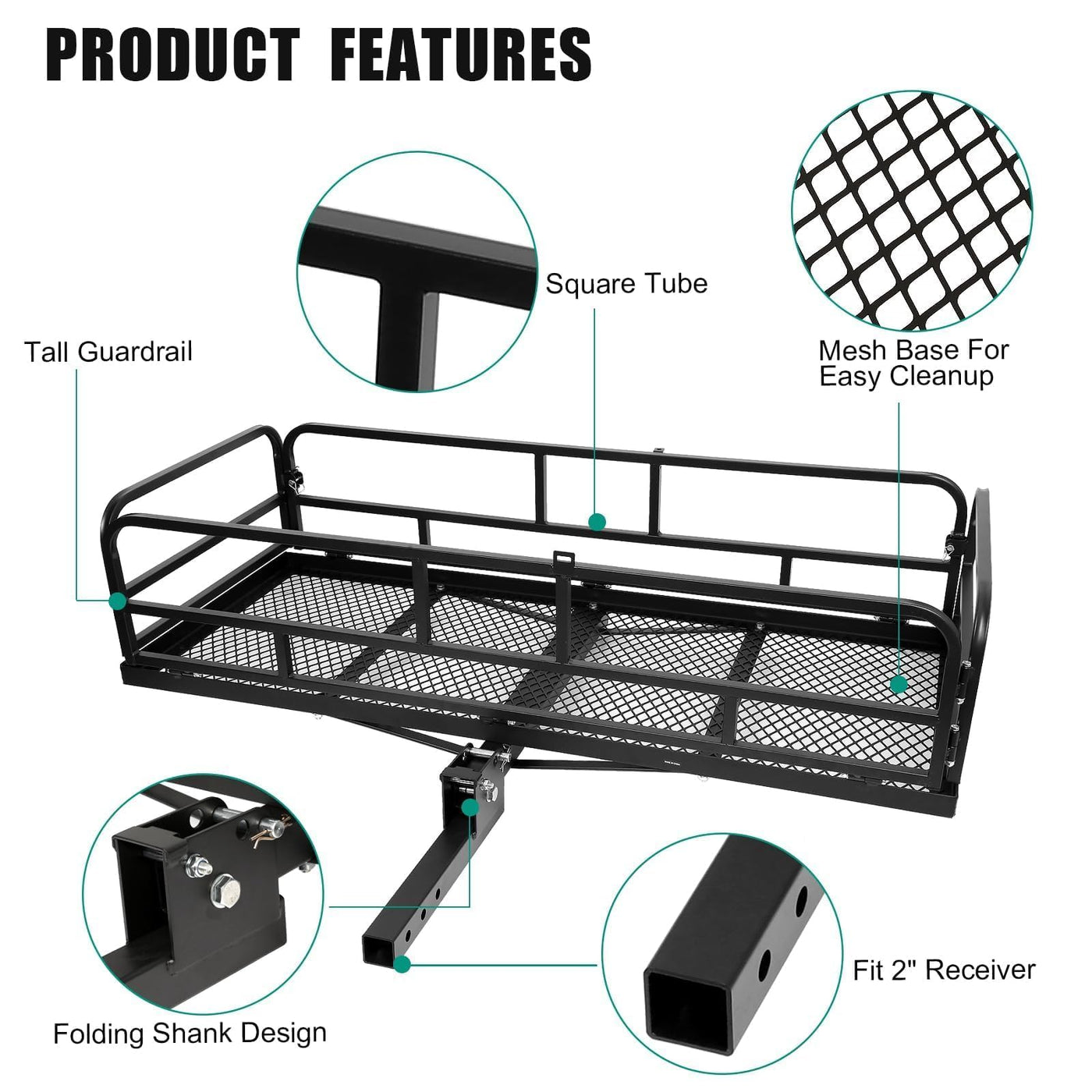 LITBM Hitch Cargo Rack, 60 x 24 x 14 Inch Folding Hitch Mount Cargo Carrier with High Side Rails for Trailer RV Truck SUV Van, 5