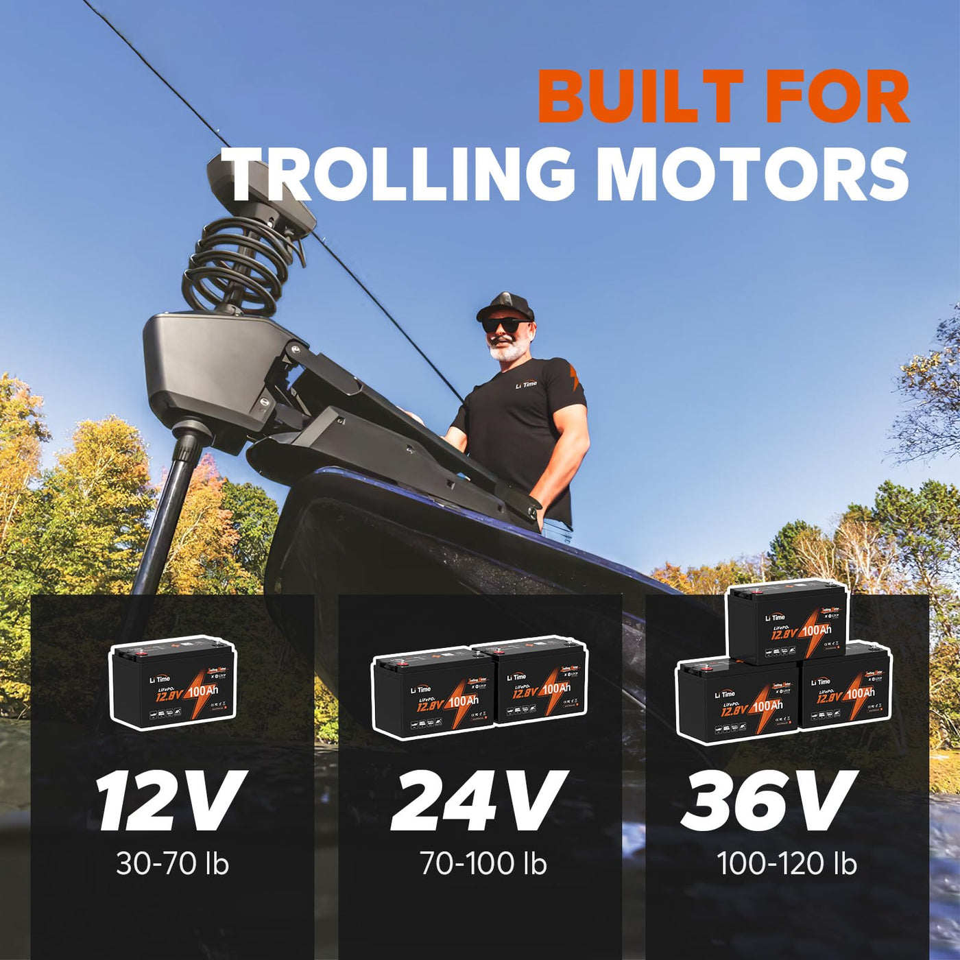 LiTime 12V 100Ah TM LiFePO4 Battery with Low Temp Protection, Group 31 Lithium Battery, Buit in 100A BMS, Up to 15000 Deep Cycles, Perfect for Trolling Motors,Yacht, Marine, Boat, RVs,Vans, Motorhomes, Home Energy, Solar Power Storage, Off-Grid Solar Power System, Backup Power, etc