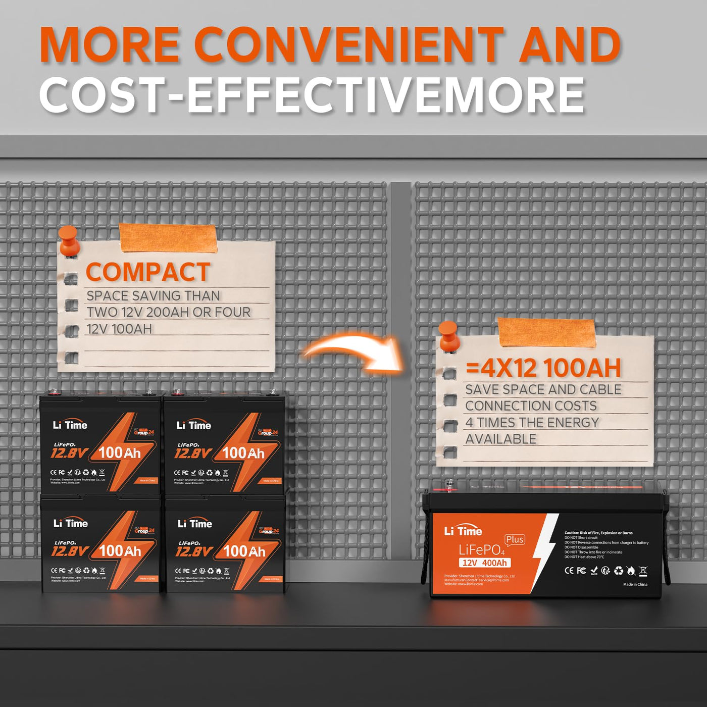 Litime 12V 400Ah Lifepo4 Lithium Battery 3200W Max. Load Power Group 8D Battery Built-In 250A Bms 5120Wh Usable Energy 4000-15000 Cycles & 10-Year Lifetime Perfect For Rv Home Solar System Fishing