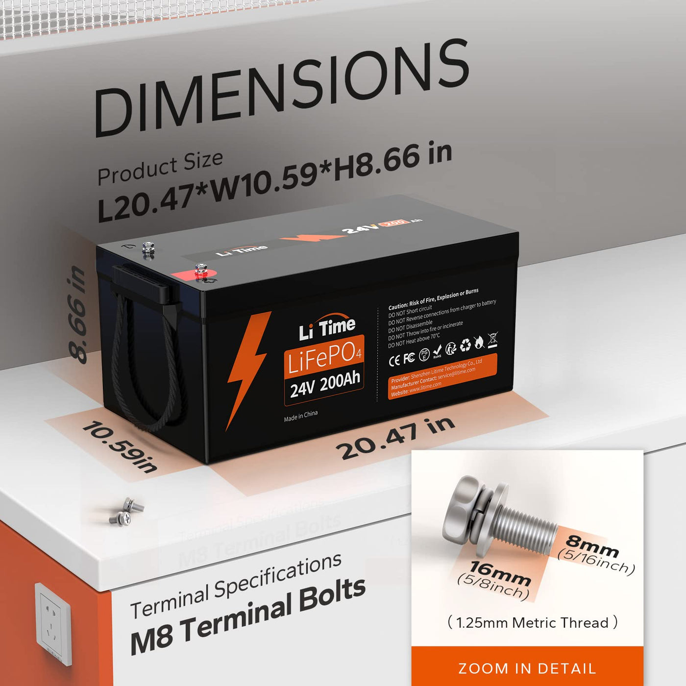 Q: Can I use the LiTime battery for RV and camping applications?A: Absolutely! The LiTime 24V 200Ah lithium battery is designed for RV and camping use, offering high energy density and portability, perfect for powering appliances during your trips.
