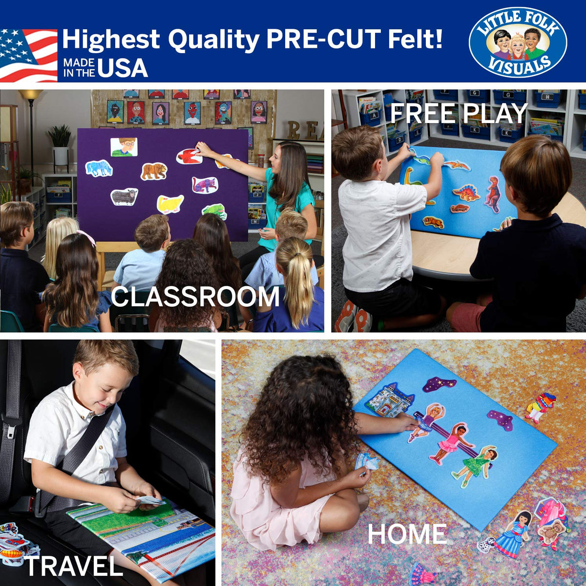 Your imagination is the limit with this flannel board from Little Folk Visuals. Handcrafted onto lightweight, reinforced cardboard backing, this flannelboard can be used for just about anything. You can use this to create your own scene or a backdrop to your educational stories or rhymes. Also, this is an excellent tool for teachers because it is a fun and creative way to teach that will keep kids interested.