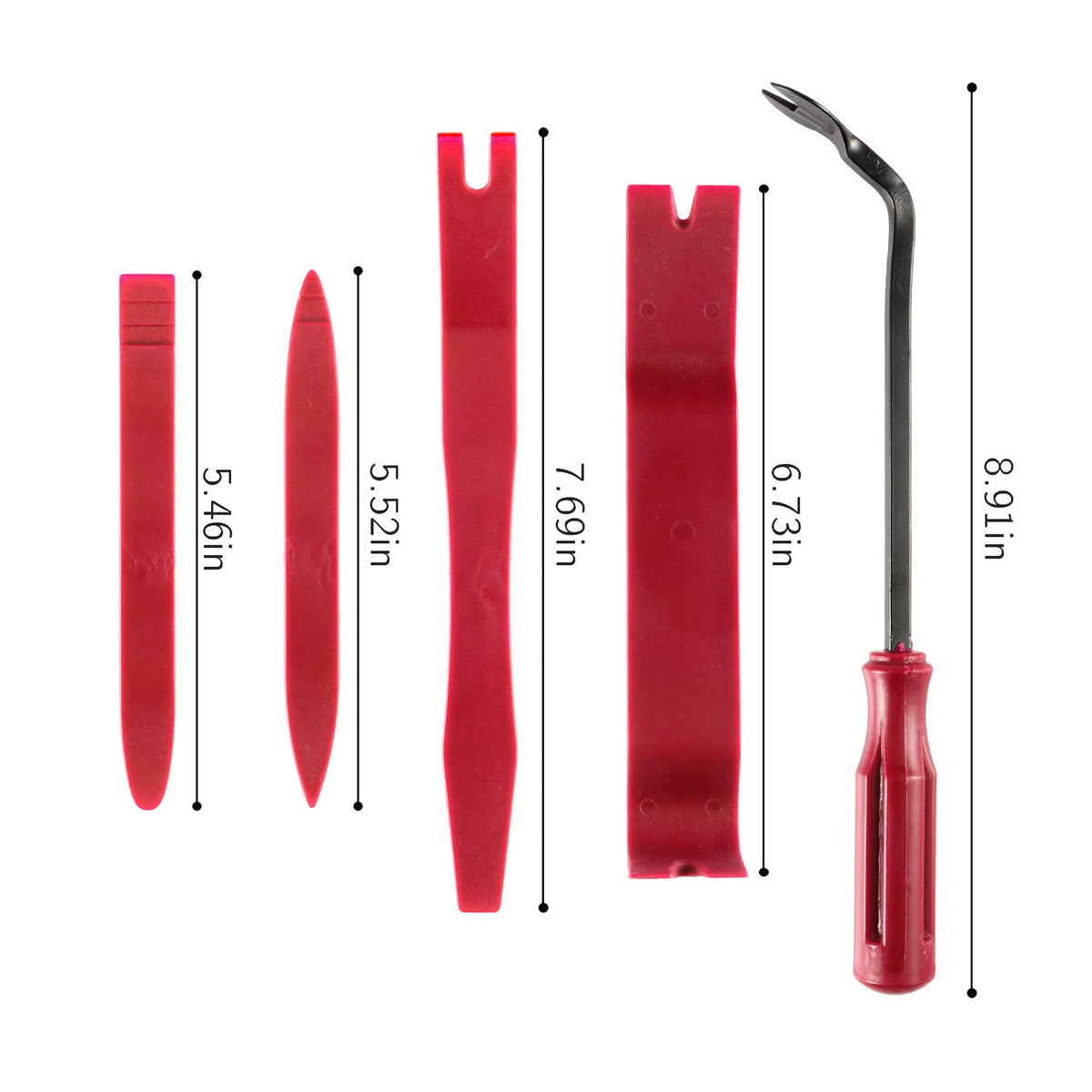 Q: What is included in the LivTee 5 pcs Auto Trim Removal Tool Kit?A: The LivTee 5 pcs Auto Trim Removal Tool Kit includes five specialized tools designed for removing interior door panels, clips, and fasteners in vehicles. This set is perfect for audio installers and DIY enthusiasts.