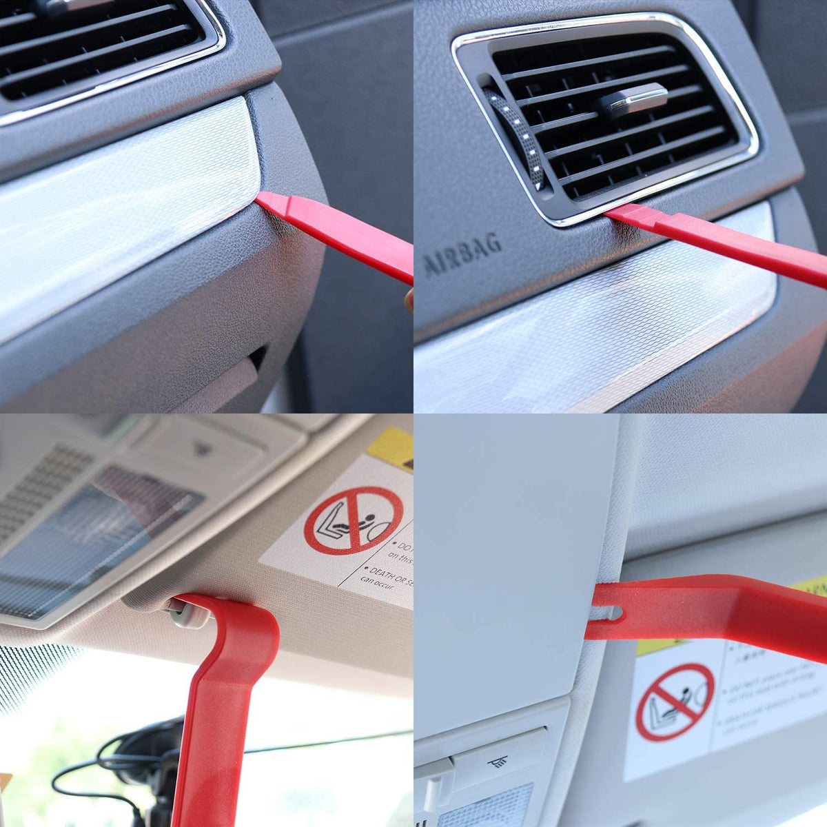 Q: What are the benefits of using the LivTee Auto Trim Removal Tool Kit?A: Using the LivTee Auto Trim Removal Tool Kit helps prevent damage to your vehicle's interior during installations or repairs. The ergonomic design and various tool shapes allow for precise maneuverability in tight spaces.