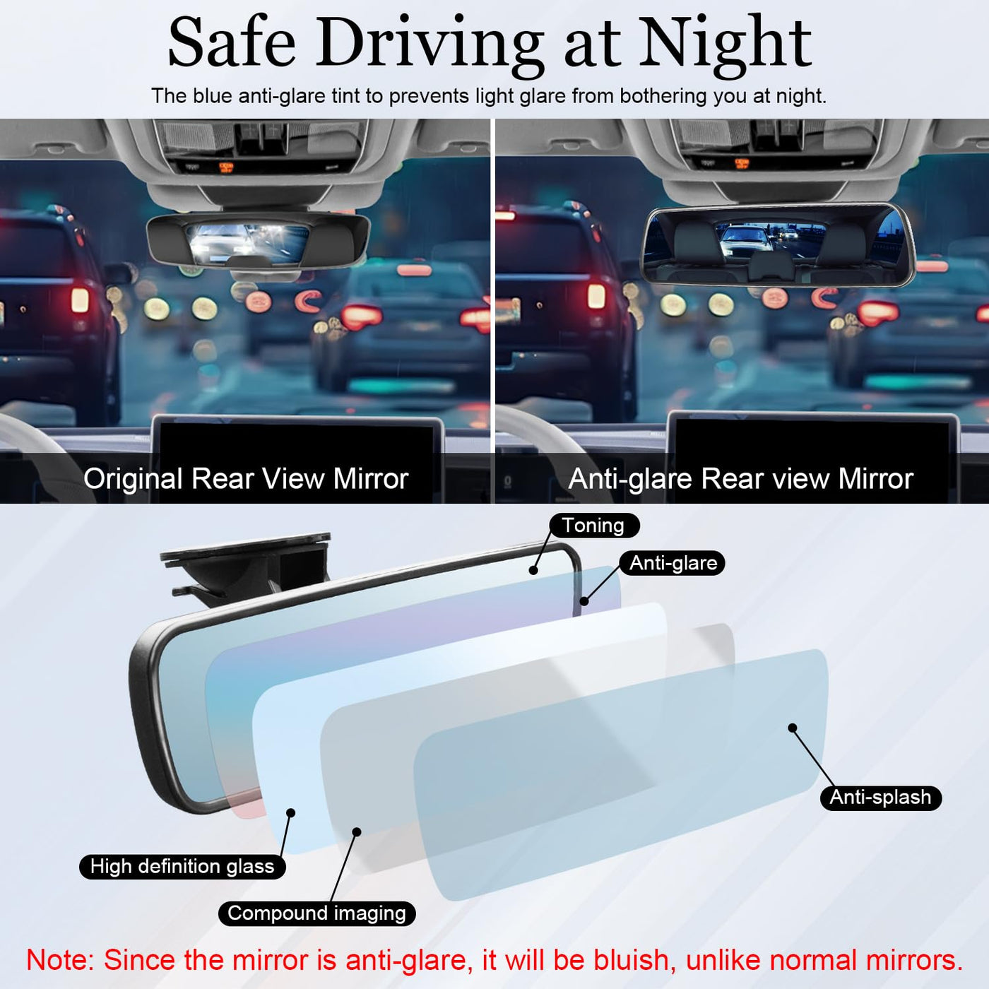 Livtee Anti Glare Rear View Mirror With Adjustable Suction Cup, Hd Universal Car Interior Rear View Mirror To Eliminate Blind Sp