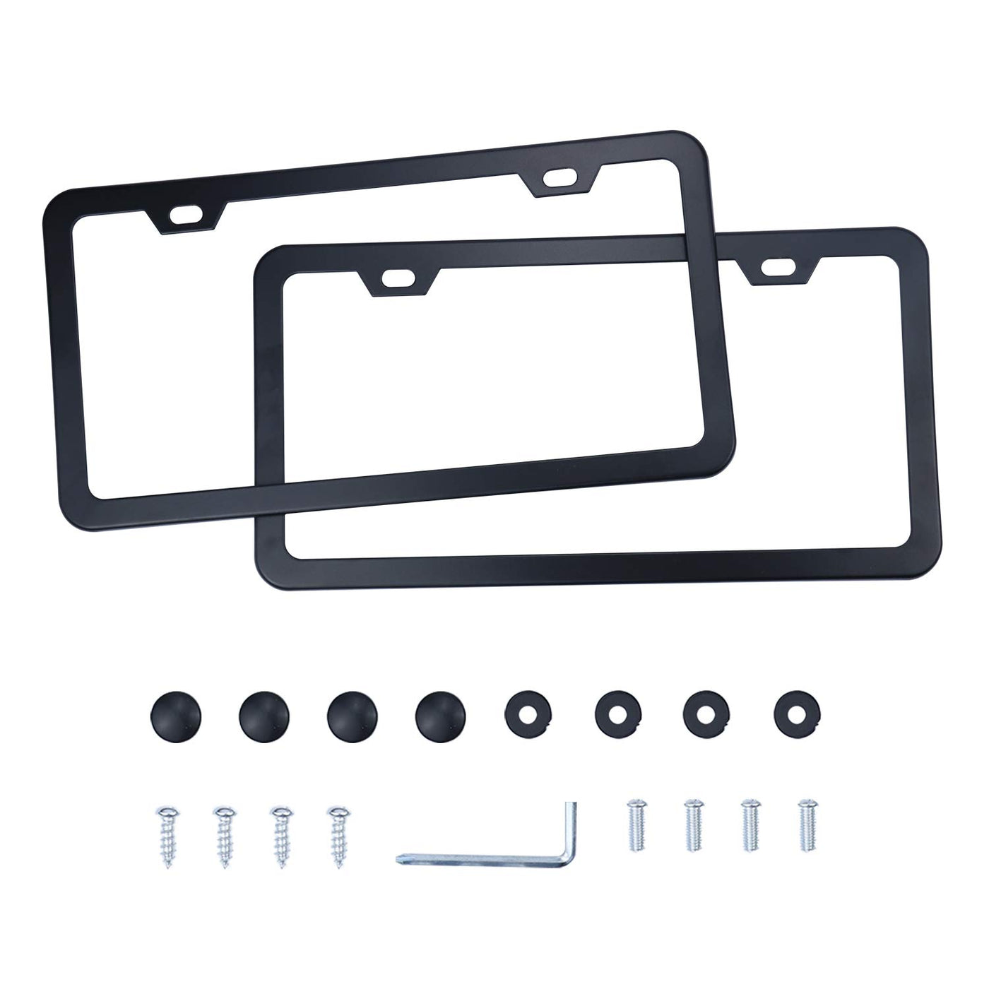 Livtee Black Aluminum License Plate Frames, 2 Pcs Car Licence Plate Covers Slim Design With Black Bolts Washer Caps For Us Vehicles