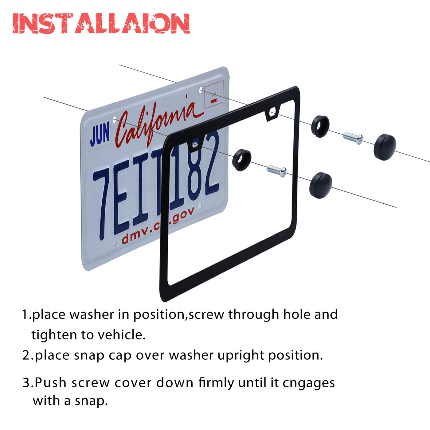 Q: How do I install the license plate frames?A: The installation is straightforward with a back double slot design that ensures stable installation. The mosaic installation method helps protect the license plate from deformation during installation.