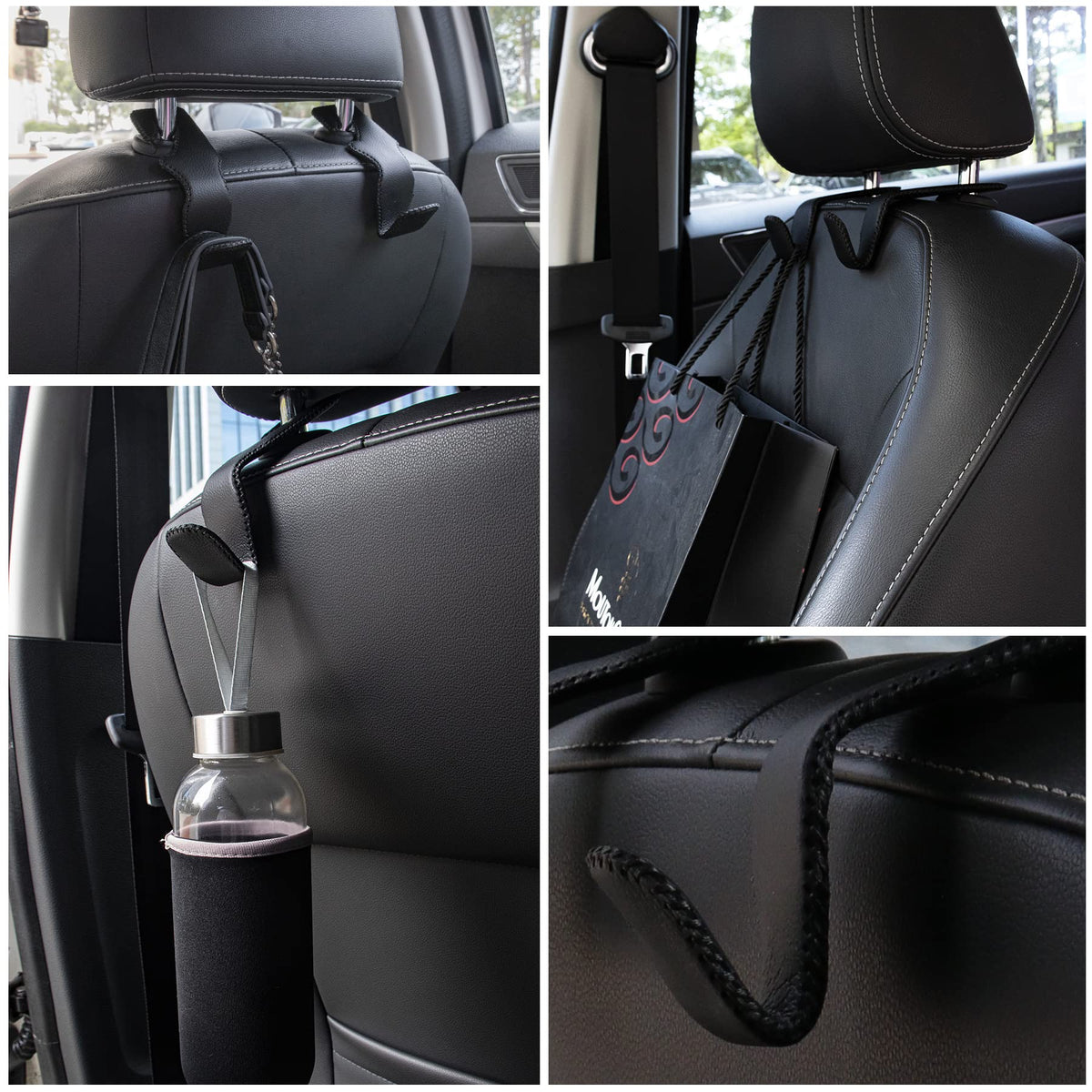 Q: What items can I hang on the LivTee headrest hooks?A: You can hang a variety of items on the LivTee headrest hooks, including handbags, grocery bags, coats, umbrellas, and other personal accessories, helping to keep your car organized.