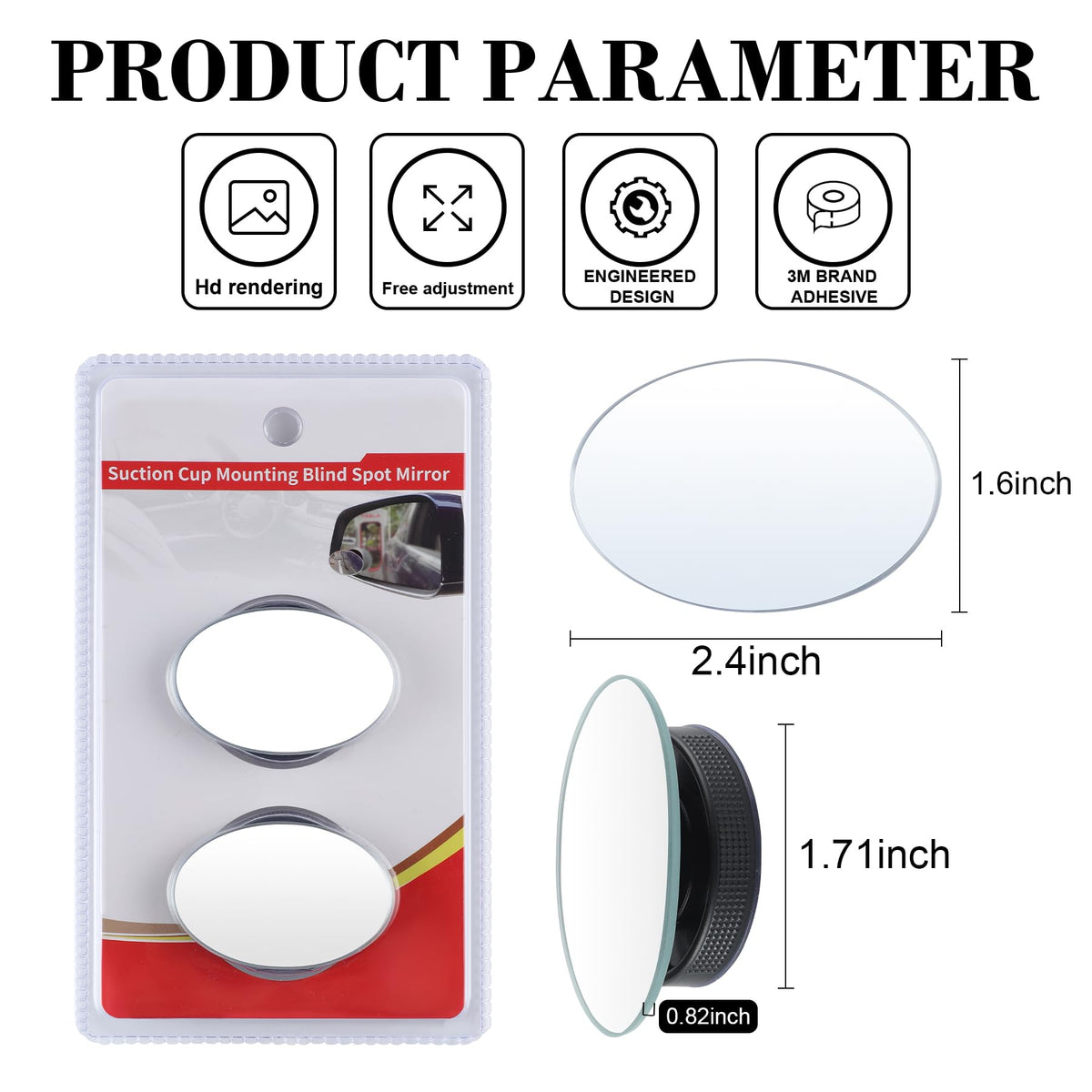 Q: Can the LivTee Blind Spot Car Mirror be easily removed without leaving residue?A: Absolutely! The LivTee Blind Spot Car Mirror features an adjustable suction cup adhesive that allows for easy installation and removal. When removed, it leaves no trace, making it convenient for users who may want to relocate the mirror.