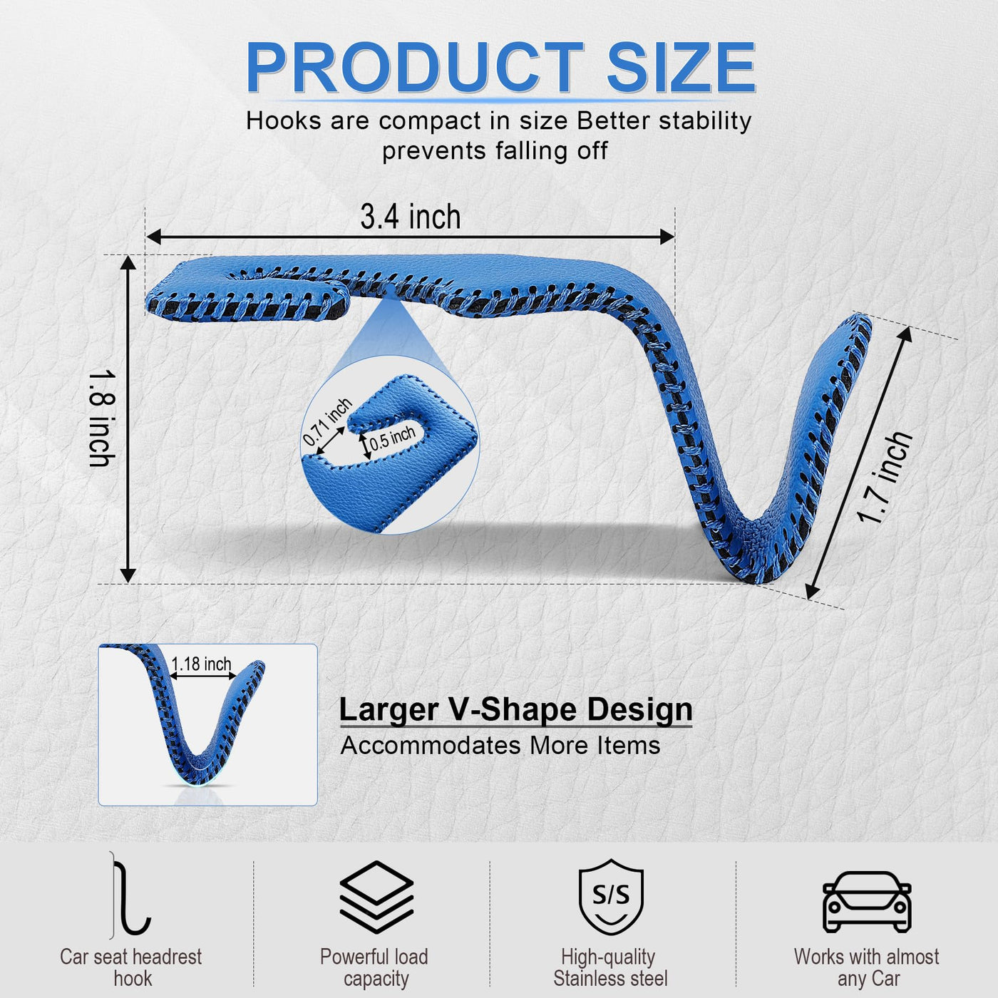 Livtee Blue Superior Leather Car Seat Back Headrest Hook, Auto Seat Hook Hangers Interior Accessories For Purse Coats Umbrellas