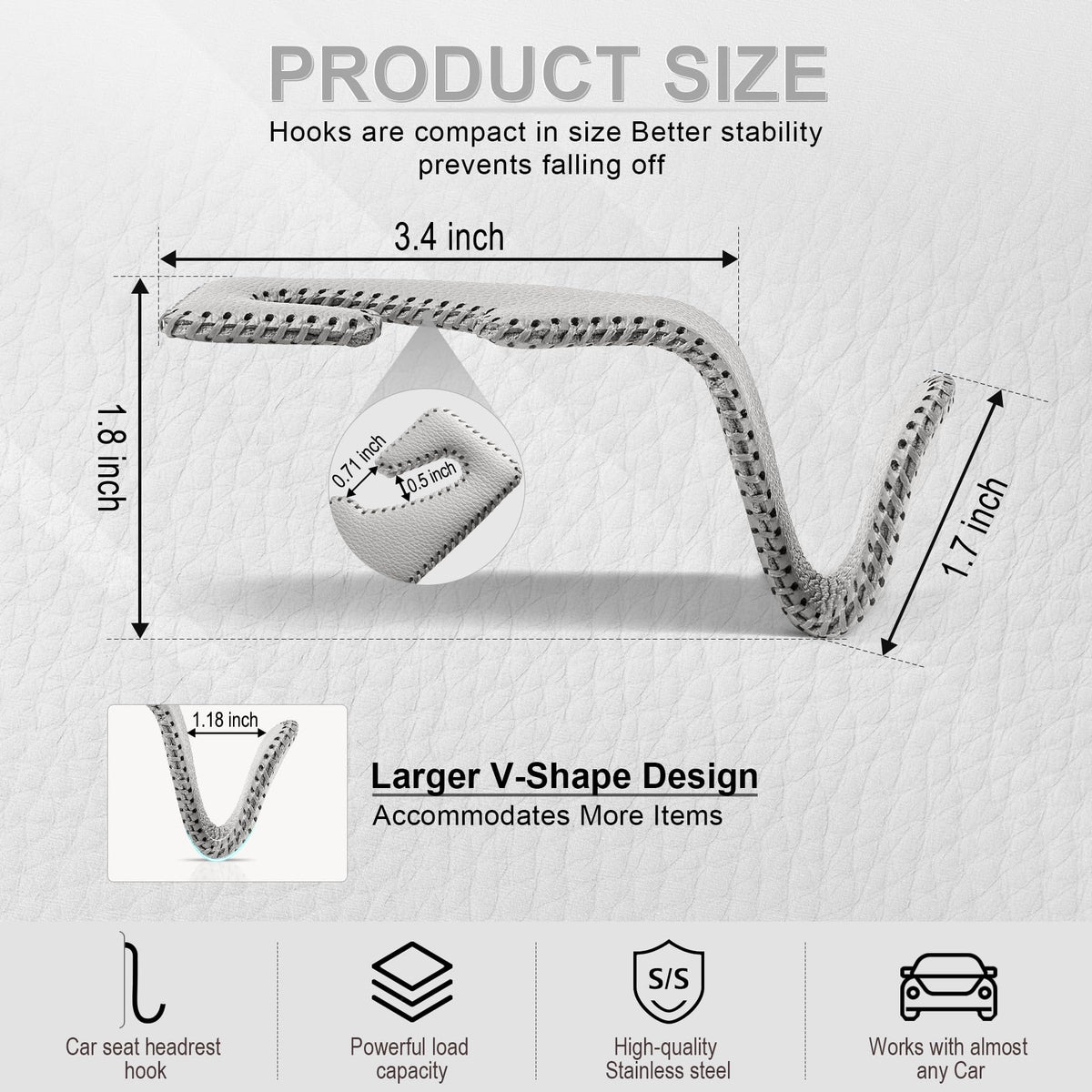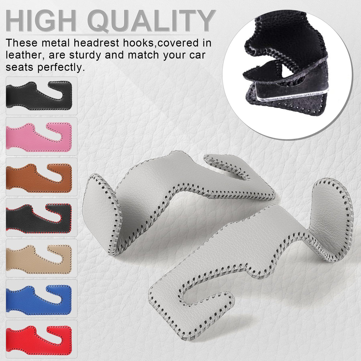 Livtee Gray Superior Leather Car Seat Back Headrest Hook, Auto Seat Hook Hangers Interior Accessories For Purse Coats Umbrellas