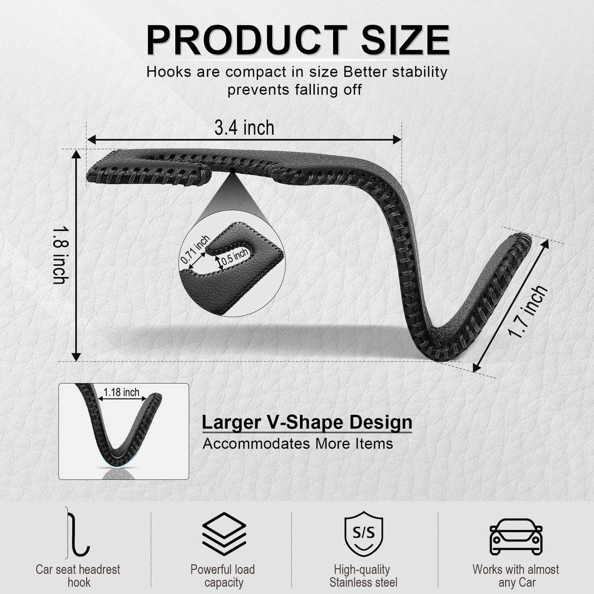 Q: Are these headrest hooks compatible with all car models?A: Yes, the LivTee Headrest Hooks are universally designed to fit most car models, ensuring a snug fit for your vehicle's headrest.