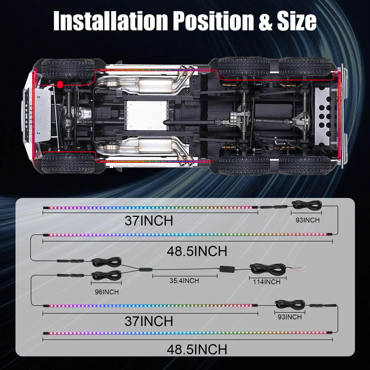 Livtee Underglow Led Lights Kit, Rgb Strip Lights With App Control For Music And Diy Modes, Under Glow Kit For Cars, Vans, Suvs,
