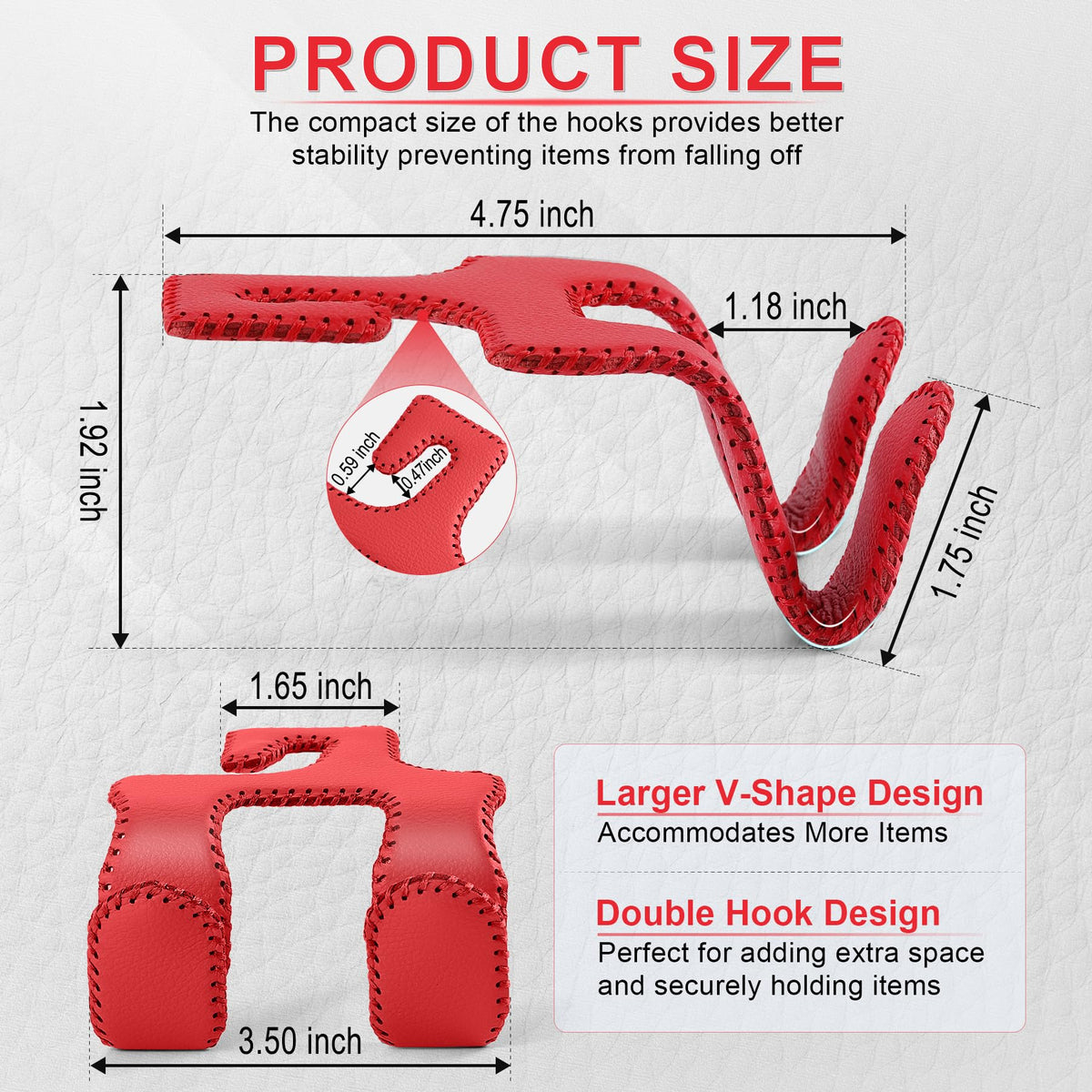 2 In 1 Design: Upgraded Design Makes Car Seat Hooks More Powerful Than Regular Car Hooks So You Can Hang More Bags On Top Of Each Hook, Organize Your Back Seat And Floor Clutter In An Orderly Fashion, Avoid Groceries And Shopping Bags Rolling Around On The Floor, And Prevent Your Handbags And Grocery Bags From Driving Off The Seat. | Easy To Install: You Can Easily Install The Hooks Without Removing The Headrest And Without Additional Tools. | Load-Bearing Capacity: Metal Skeleton, Compared To Plastic Hooks, More Durable, One-Piece Molding, The Maximum Load-Bearing Capacity Of The Hook Is 55 Pounds. | High Quality: The Car Rear Headrest Hooks Are Made Of Metal And Wrapped In Leather, Which Makes The Hooks Sturdy And A Perfect Match For Your Car Seats. The Texture Is Clear, Wear-Resistant And Non-Slip, With A Strong Texture And Soft Leather That Won 'T Damage Your Car. | Purchase With Confidence: Any Issues Or Questions Please Feel Free To Contact Us, We Are Always Here To Satisfy All Of You.