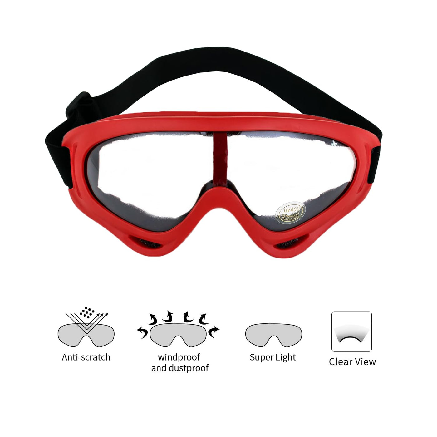 Ljdj Motorcycle Goggles,2 Pack Dirt Bike Atv Motocross Riding Hiking Protective With 2 Pack Neck Breathable Bandana Mask (Red +