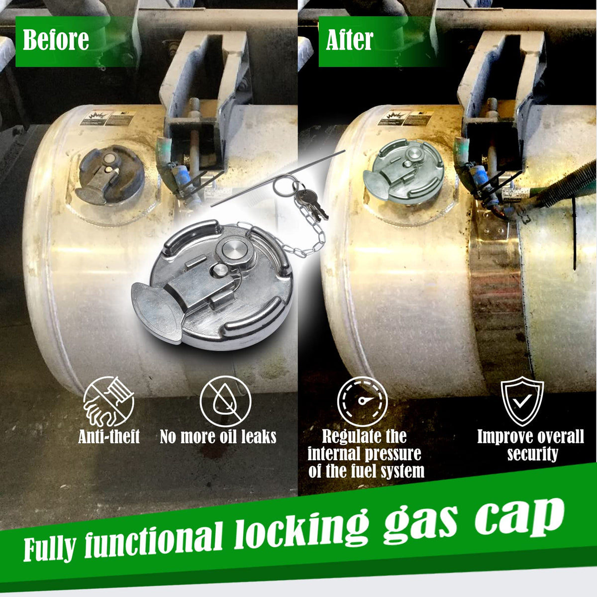 Q: How does the locking mechanism work on this fuel cap?A: This Locking Diesel Fuel Cap features a secure locking mechanism that prevents unauthorized access to your fuel tank. It includes a pressure release device that allows for easy removal and reattachment, ensuring that your fuel remains safe and secure.