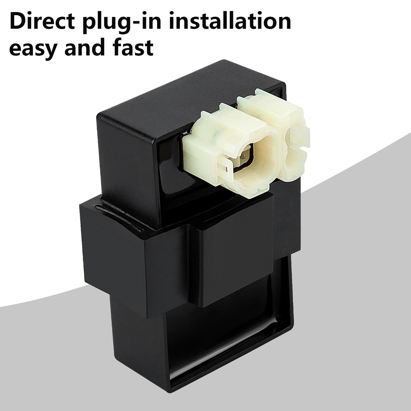 6 Pin DC CDI Box Can Fit GY6 50cc 70cc 90cc 110cc 125cc 110cc 150cc 200cc 250cc Chinese ATV Quad Go Kart Pit Dirt Bike Roketa Sunl Lance Scooter Moped Motorcycle Is your black box an AC or a DC-CDI? Here are a few tips: If the bike has no battery then its an AC-CDI Age of your bike? Old bikes are mostly AC whereas news one are more DC Search in your Service Manual Technical Specifications for AC-CDI or DC-CDI mention. Google your bike with ACCDI and DCCDI key words The only reliable way is to measure the voltage between GROUND and the POWER source input of the CDI while the engine is running. Ie: On a GY6 CDI measure between GND pin 4 and Power pin 6 If 12 to 15volts DC then its a DC-CDI If 50 to 100volts AC then its an AC-CDI While the engine is running, disconnect the battery and the regulator, The engine stall because it has no more +12v then its a DC-CDI The engine still run because its powered by the spinning rotor then its an AC-CDI If the bike has a 12v battery, a DC-CDI can replace an AC-CDI but on the contrary an AC-CDI cannot replace a DC-CDI ! This CDI Box fit almost all Chinese brandslike TaoTao Buyang Roketa Coolsport NST BMX Kazuma Sunl AIM-EX Baja Panterra Kymco GILERA HANGLONG HAOJIN HAOJUE HONGZHOU HUATIAN JIAJUE JIANSHE JINLUN JMSTAR JONWAY KAITONG KEEWAY KINROAD KYMCO LIFAN LINGBEN LINGTIAN LINHAI LINTEX LONCIN LONGJIA MAWI MEIDUO MOTORRO PIAGGIO QINGQI RHON RIEJU SACHS SHINERA SKYGO SUKIDA VESPA WANGYE XINGYUE XINLING XINTIAN YIBEN YINGANG ZHONGYU ZNEN ZONGSHEN