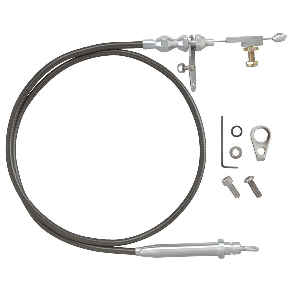 Lokar Kickdown Kit is designed with a specially extruded liner for extended life of the cable, not to be confused with ordinary brake hose. The kickdown features aluminum fittings with ferrule to eliminate frayed cable ends. The kickdowns are adaptable for all types of manifolds including tunnel ram, blower manifolds and Weber induction systems. The kickdown can be mounted with Lokar's stainless steel carburetor bracket and return springs (which are sold separately). All units are available in black housing upon special request. It has complete instructions which are included in the kit.