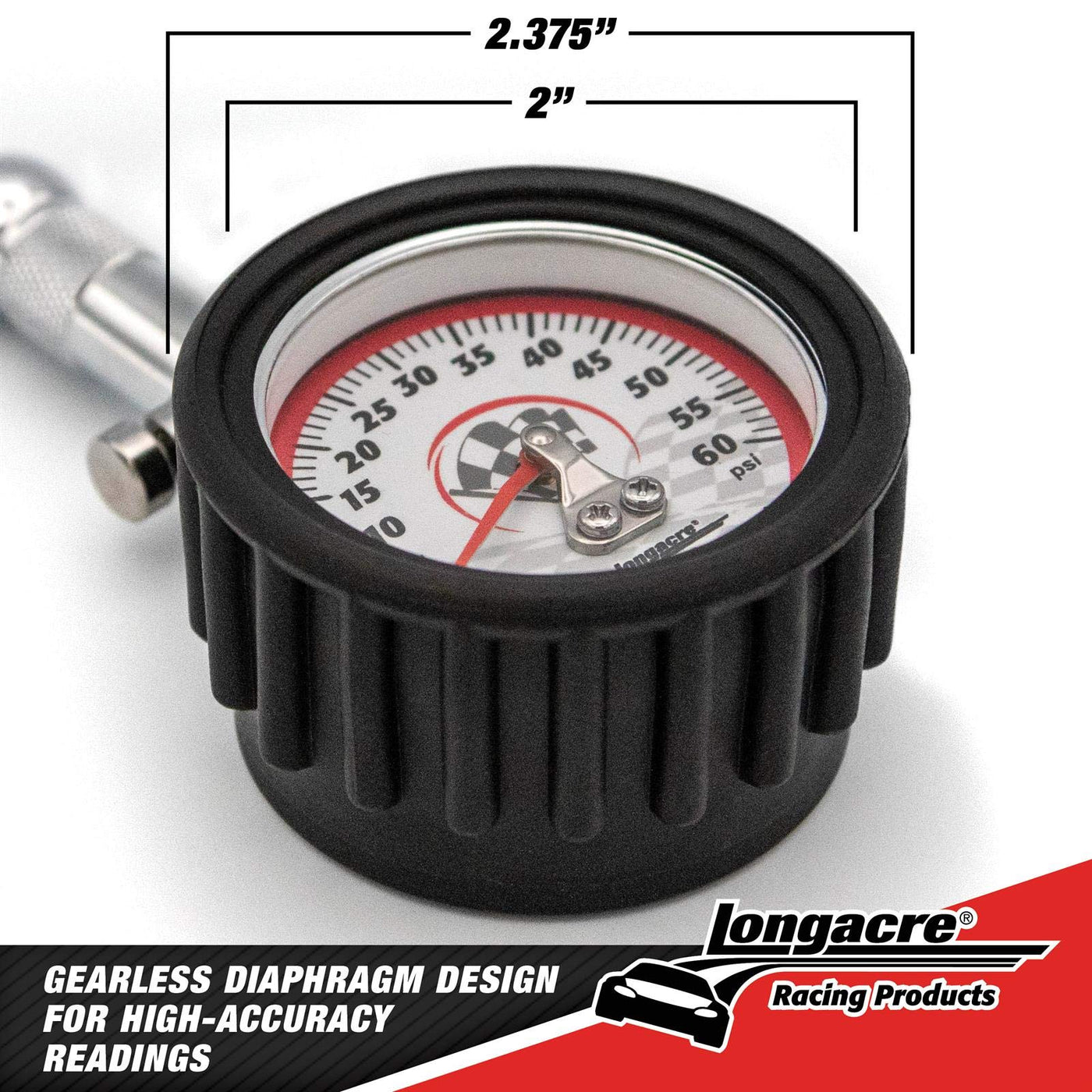 Q: What is the maximum pressure reading for the Longacre tire pressure gauge?A: The Longacre 52-52005 tire pressure gauge can measure up to 60 PSI, making it suitable for a variety of vehicles.
