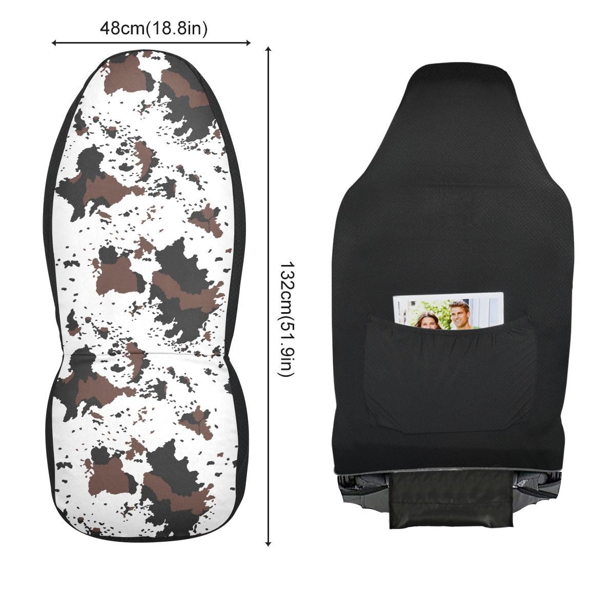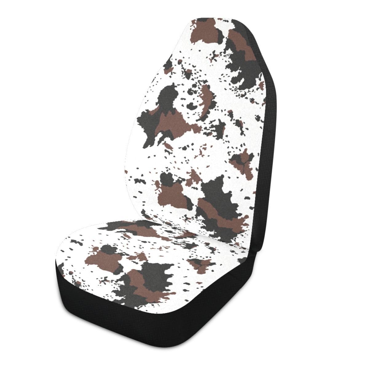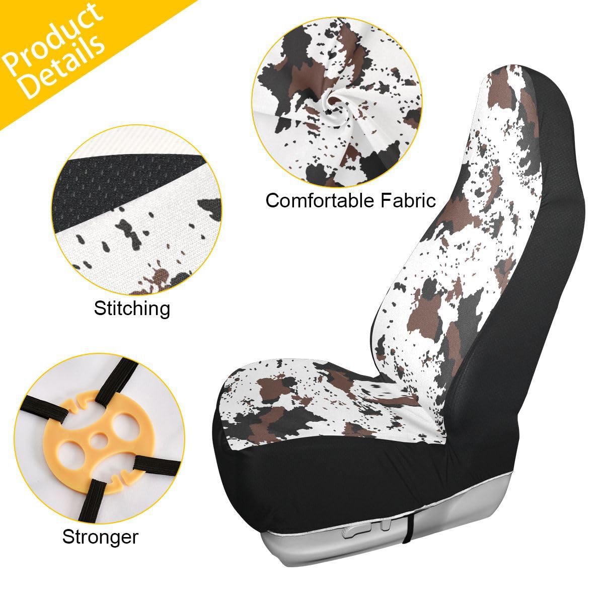 LONSANT Cow Print Car Seat Covers Set of 2,Rustic Spotted Cow Fur Texture Black Brown Cowhide Universal Auto Front Seat Protecto