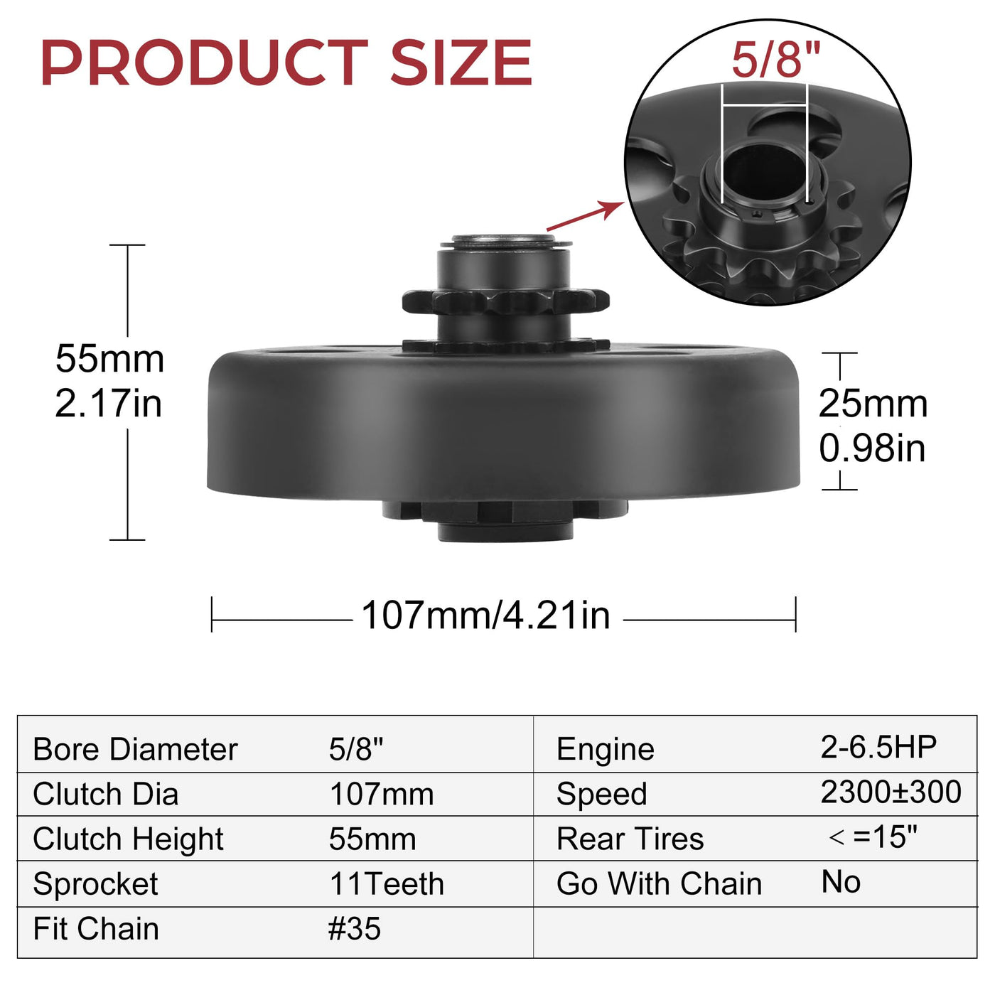 LotFancy Go Kart Clutch 5/8 Bore, 11 Tooth Centrifugal Clutch for #35 Chain, Fits Predator 2.8 HP 97cc Engine, Some Older 3hp