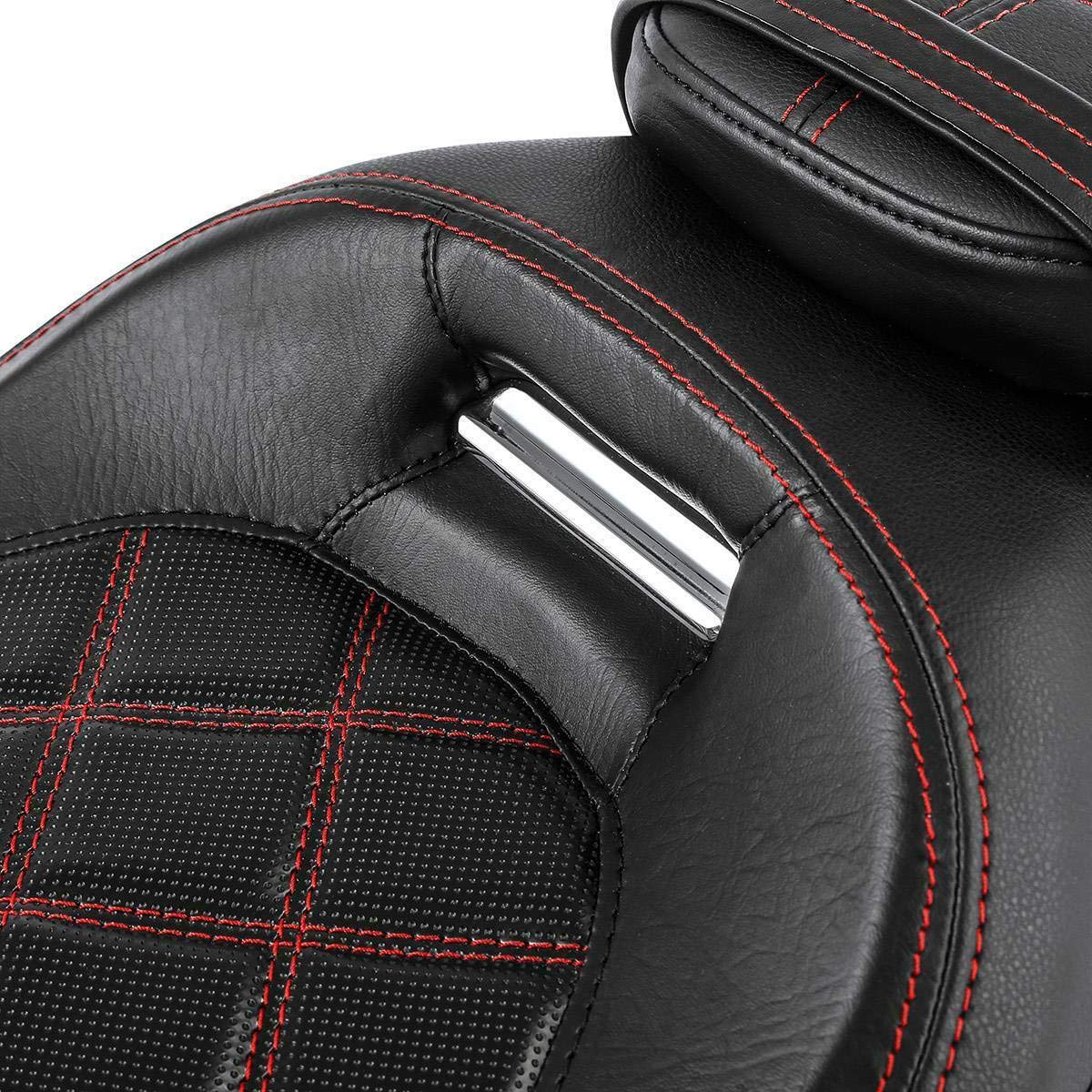 Low-Profile Driver Passenger 2-Up Seat Set Red Stitching Fit For Harley Touring Road King Flhr Street Glide Flhx 2009-Later Road Glide Fltrx Cvo Street Glide Flhxse Electra Glide Flhtcu