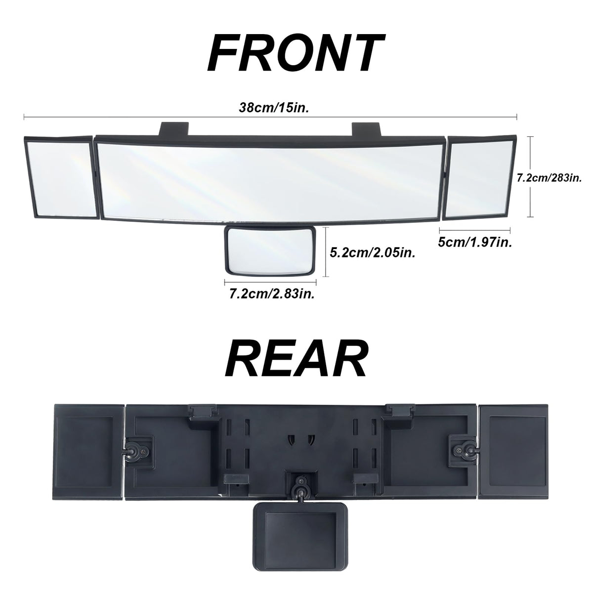 4 in 1 Rearview Mirror: Car rear view mirror with 4 special glass can provide more wide angle vision than original mirror. Look clearly at the rear vehicles and passengers, effectively avoid blind spots and dead corners, reduce the occurrence of safety accidents. Plus do not need to turn around when you want to keep an eye on kids on the backseat while driving. Upgraded HD Glass Surface: Wide angle car rear view mirror made of high definition curved glass, eliminates distortion and double reflection. Effectively reduce high beam glare, soft and comfortable vision. Easy to Install: Finish installing within 10 seconds without any tools. Just buckle the adjustable clip on the back of the mirror to the bottom of the original mirror and adjust the angle, easy to install and disassemble. Don't Worry Shaking: This wide angle rearview mirror comes with sturdy clamps that firmly grips on your original mirror, not too tight, but just right grip and it won't fall off even on bumpy roads. Note and Wide Compatibility: Suitable for most cars, trucks, vehicles, SUVs and more. If you are not sure about the size, please compare the specification we provided with your car original rearview mirror, or it may not fit your car.