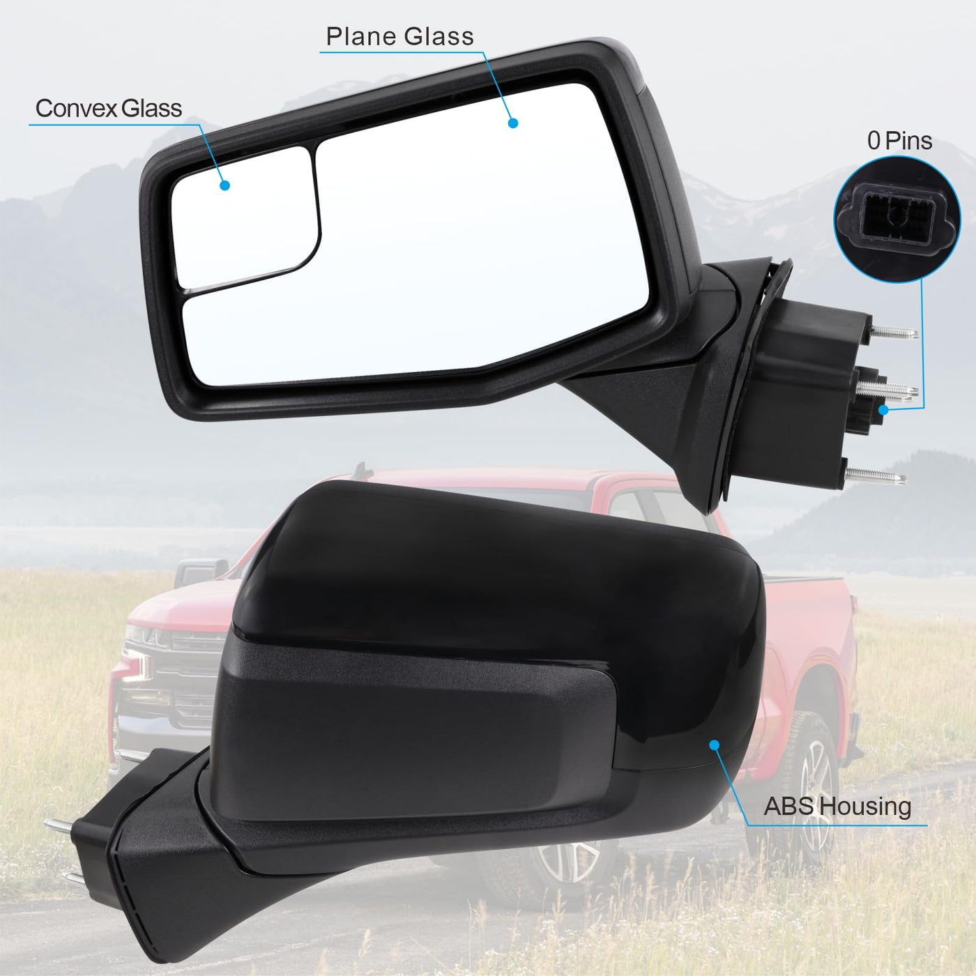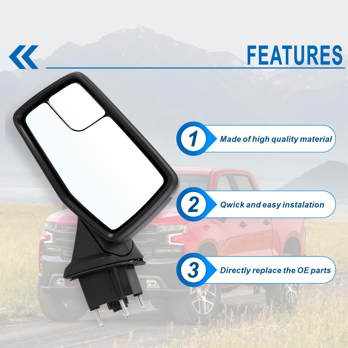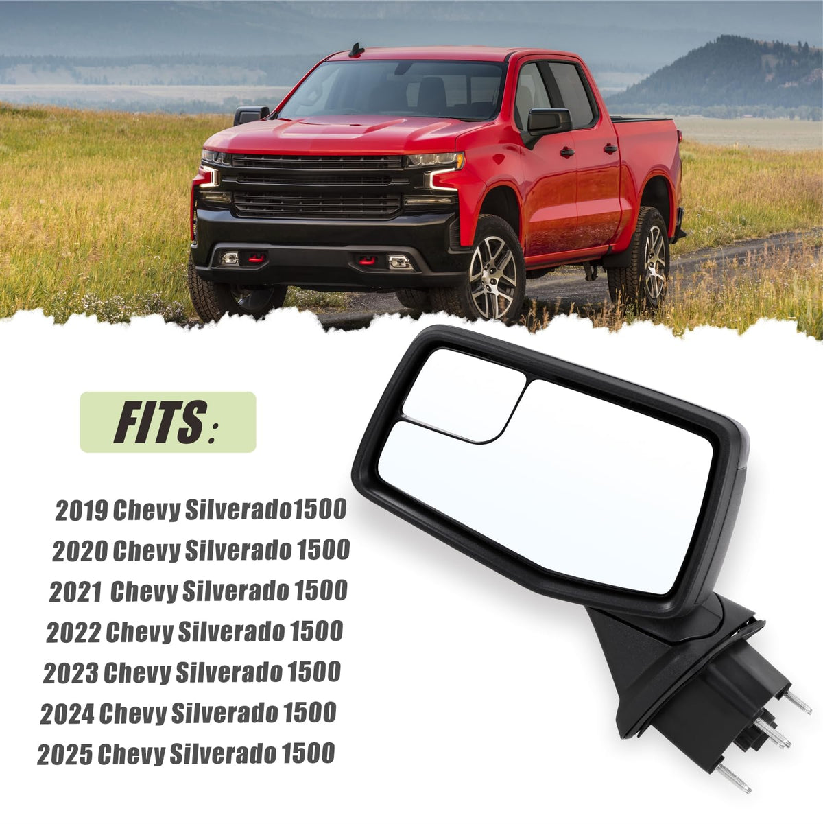 Lqito Left Driver Side Mirror Compatible with 2019 2020 2021 2022 2023 2024 2025 Chevy Silverado 1500 Black Replace #GM1320582(0