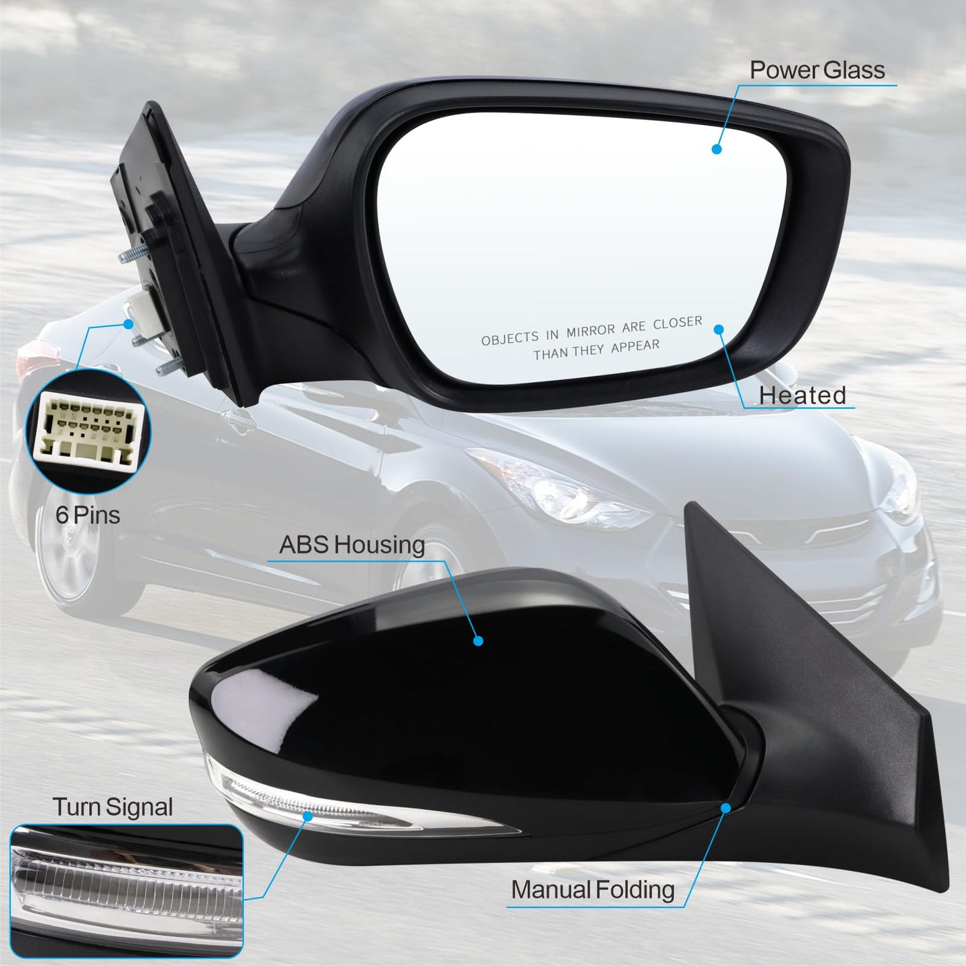Lqito Right Passenger Side Door Mirror Compatible With 2011 2012 2013 Hyundai Elantra With Manual Folding Power Glass Heated Tur