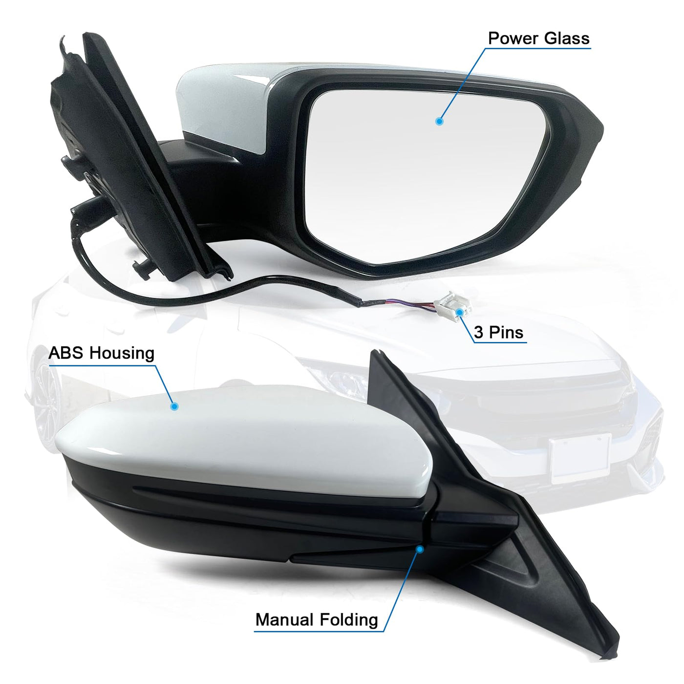 Lqito Right Passenger Side Door Mirror For 2016-2021 HONDA CIVIC LX SE Sport with Power Mirror Ajust Manual Fold Non-Heated Matc