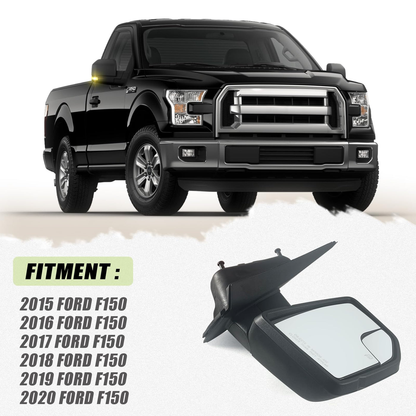 Lqito Right Passenger Side Door Mirror with Blind Spot Glass Assembly Fits 2015-2020 Ford F150 With Turn Signal Light Power Heat