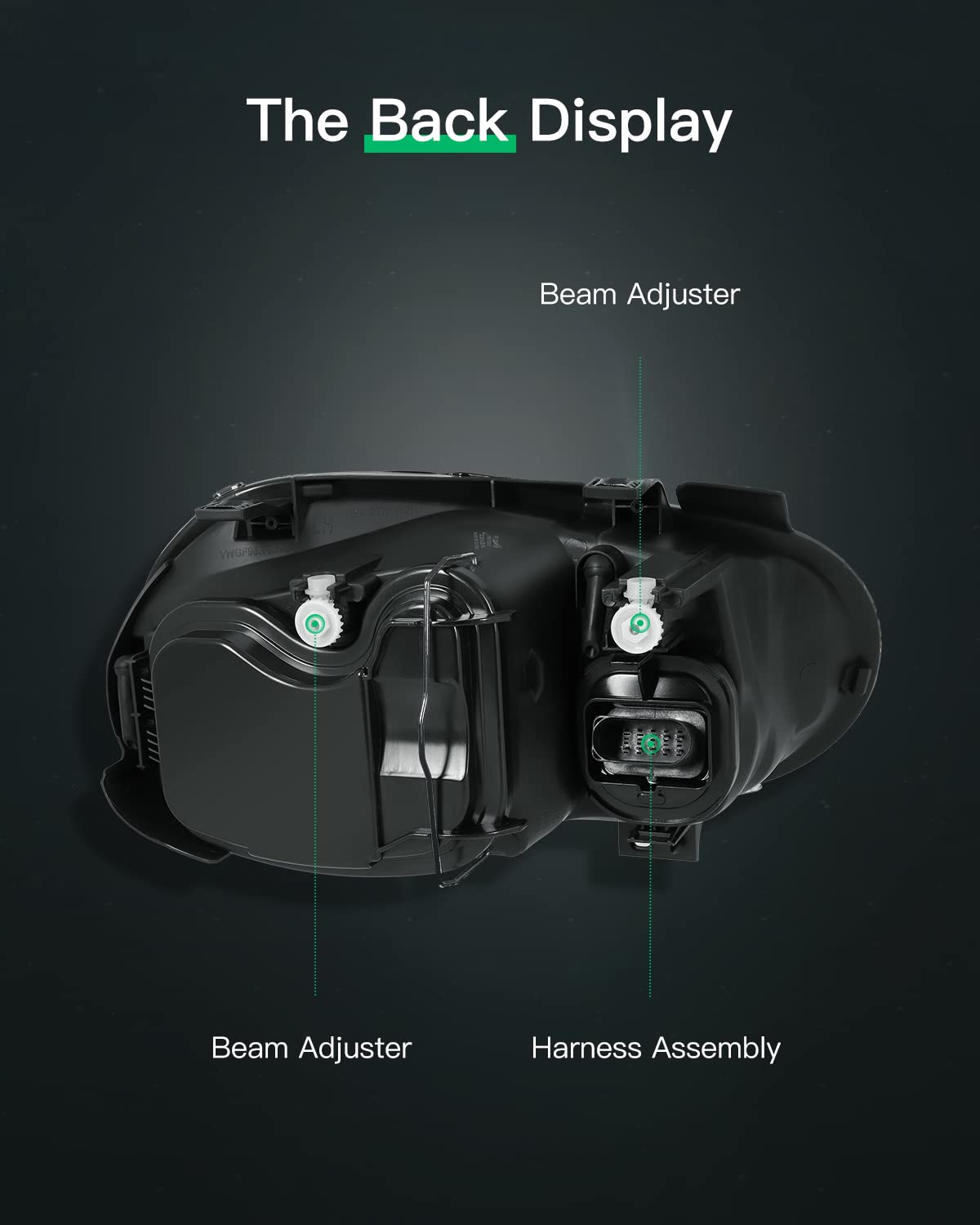 Q: What vehicles are compatible with the LSAILON headlight assembly?A: The LSAILON headlight assembly is compatible with Volkswagen Cabrio 2-Door models from 1999 to 2002 and Volkswagen Golf 2-Door models from 1999 to 2006, as well as 4-Door models from 1999 to 2006.