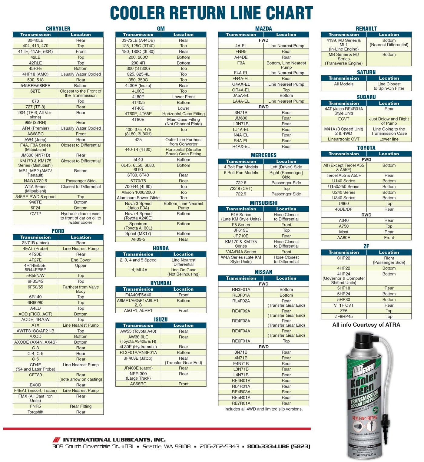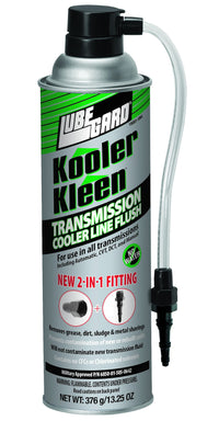 LUBEGARD Kooler Kleen Trans Cooler Flush uses a proprietary mix of detergents to safely clean transmission cooler and cooler lines in automatic, CVT, DCT and manual transmissions. As recommended by OEMs, transmission fluid cooler lines MUST BE flushed to prevent pollutants such as friction materials and metal debris from entering newly installed transmissions. Kooler Kleen safely removes these pollutants from the transmission cooler and lines without use of water-based detergent that could be harmful to transmissions and seals.