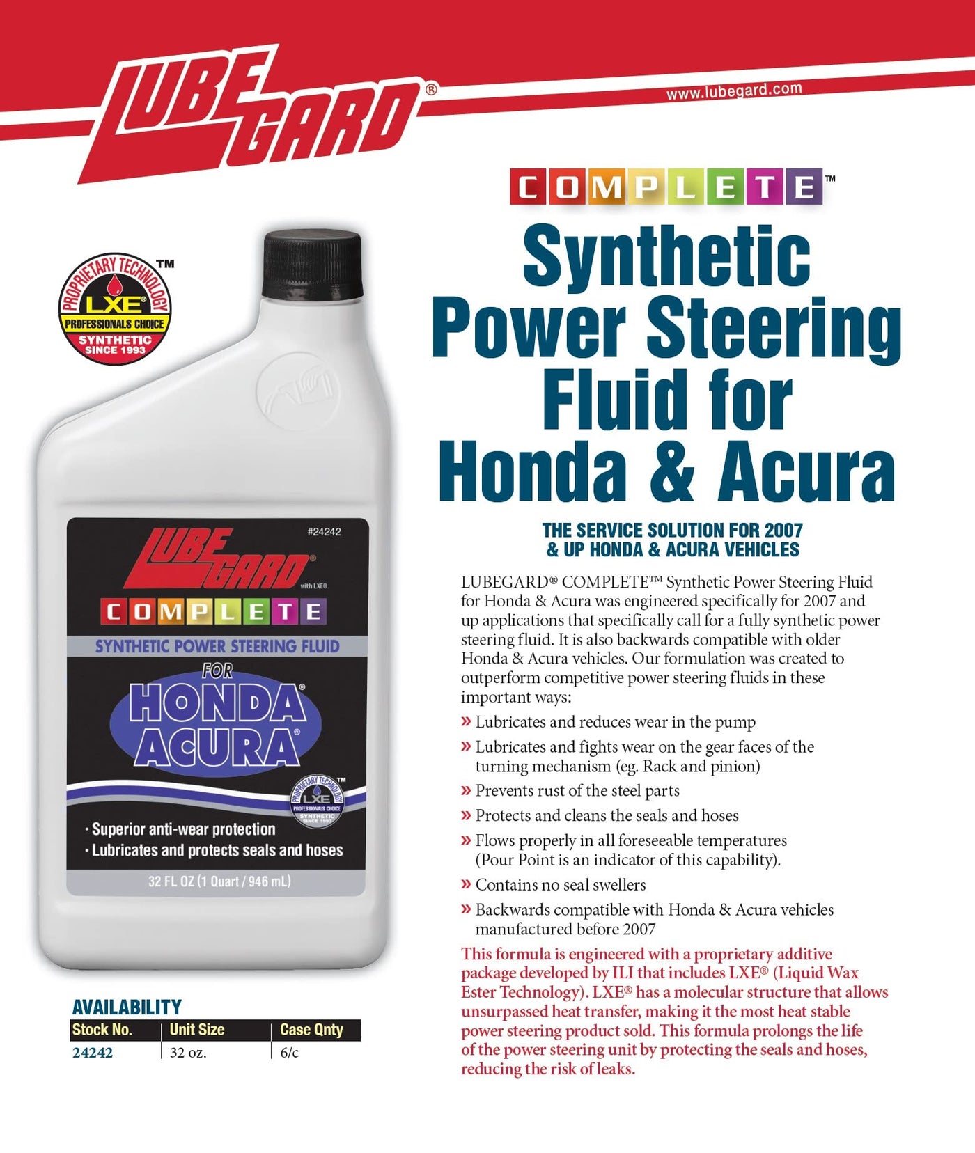 Lubegard 24242 Complete Synthetic Power Steering Fluid For Honda/Acura, 32 Fl. Oz.