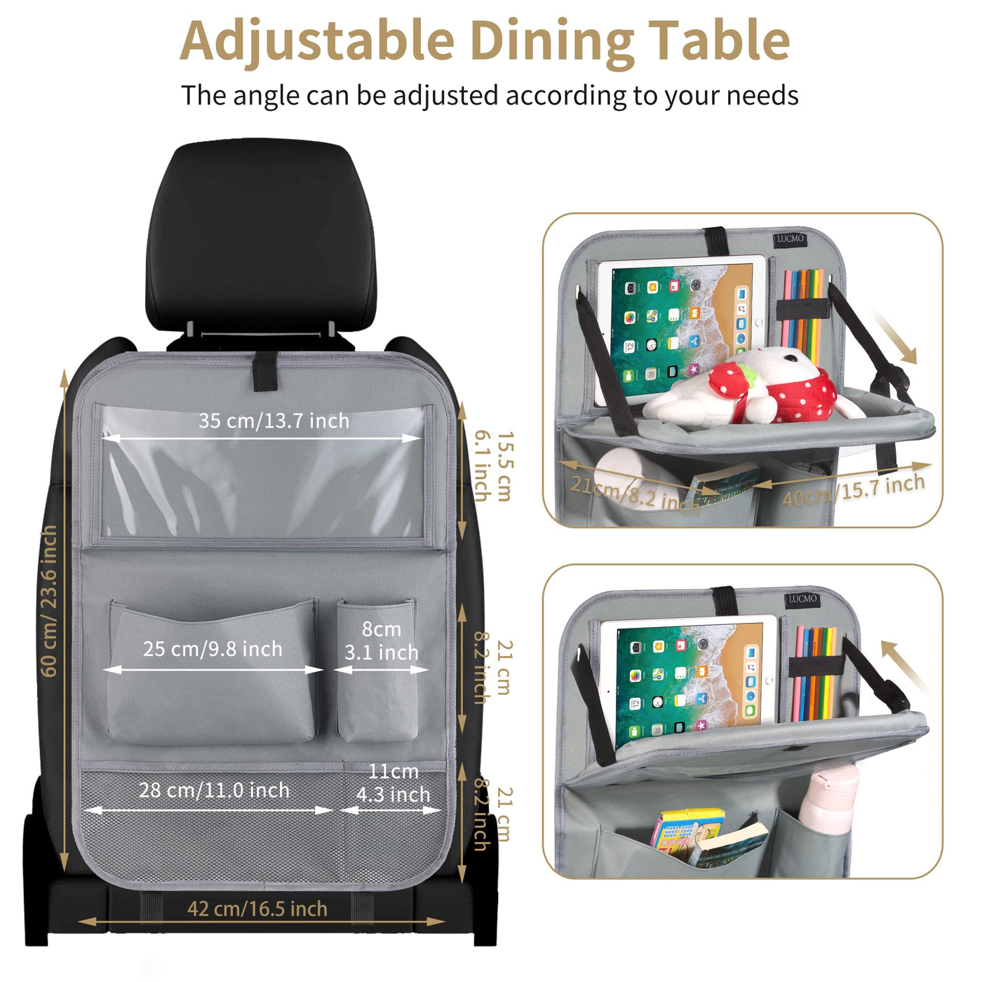 LUCMO Car Backseat Organizer with Tablet Holder-2 Pcs,6 Storage Pockets Car Storage Organizer with Foldable Food Tray Protectors