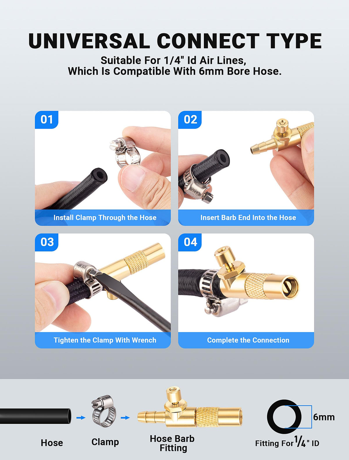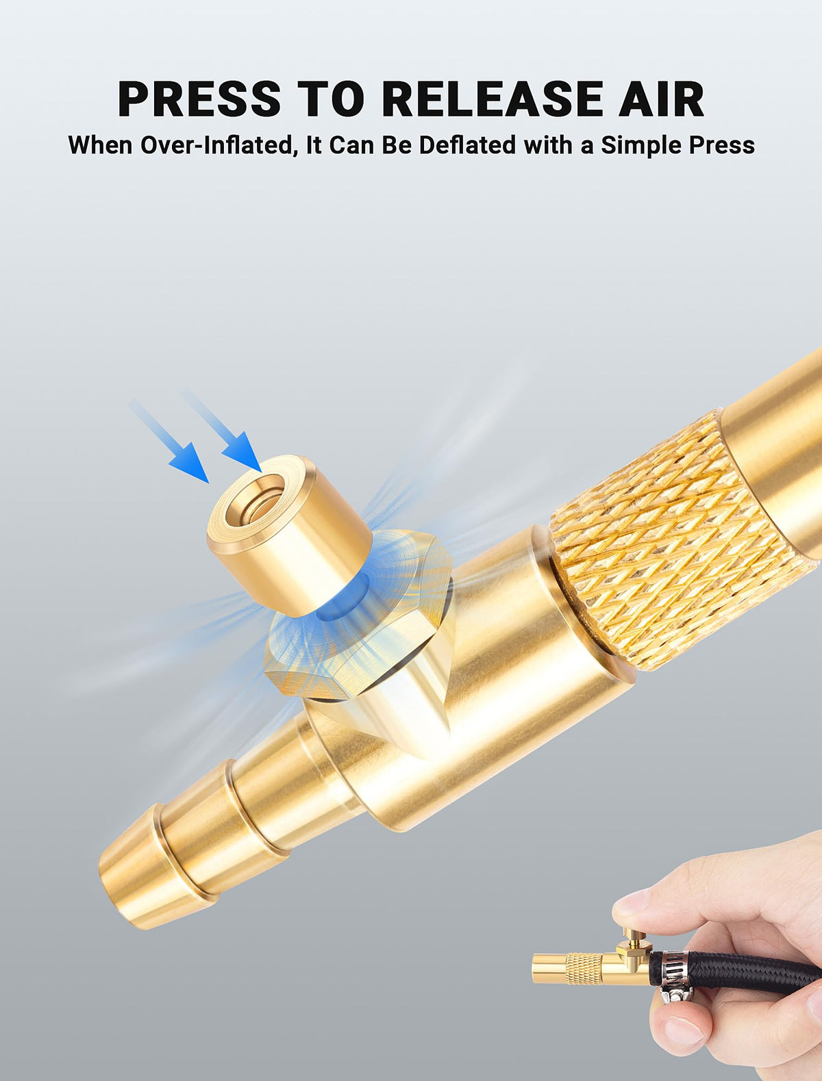 LUMITECO 2-Pack Screw On Air Chuck with 1/4'' Barb End, Twist-On Tire Chuck w/Air Bleed Valve for Portable Mini Air Compressor, Tire Inflate Pump Replacement Nozzle w/Barb Connector for Hose Repair ?QUICK AIR RELEASE FUNCTION?LUMITECO mini air chuck hose end has an air bleed valve designed to eliminate having to remove the valve to check pressure and bleed off excess air if overinflated. Quick connect to inflate and with a simple press to deflate. ?UNIVERSAL CONNECT TYPE?This tire inflator chuck has barbed fitting for 1/4'' ID air lines, which is compatible with 6mm bore hose. 360 rotation Twist-on design allows air chuck hold the standard valve stem tightly, compatible with American schrader valves. ?SOLID CONSTRUCTION?Well-designed with premium smooth surface for higher durability and resistance to corrosion. 2 solid brass construction air chuck ends with 2 free worm gear hose clamps, Making it a top choice for hose repairs. ?HOLD TIGHTLY & NO AIR LEAKAGE?This tire chuck with thread makes it strong enough to hold the tire valve stem tightly for easy hands-free inflation, Built-in rubber ring effectively prevents air leakage. ?WIDE APPLICATION?Quick connect tire inflator chuck for portable tire inflators, mainly used for bicycles, motorbike, cars, buses and trucks. Just buy with confidence today, we always stand behind all of our items!