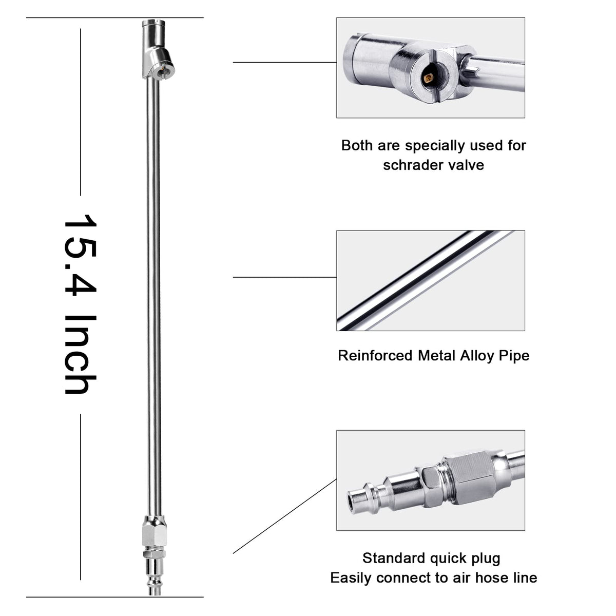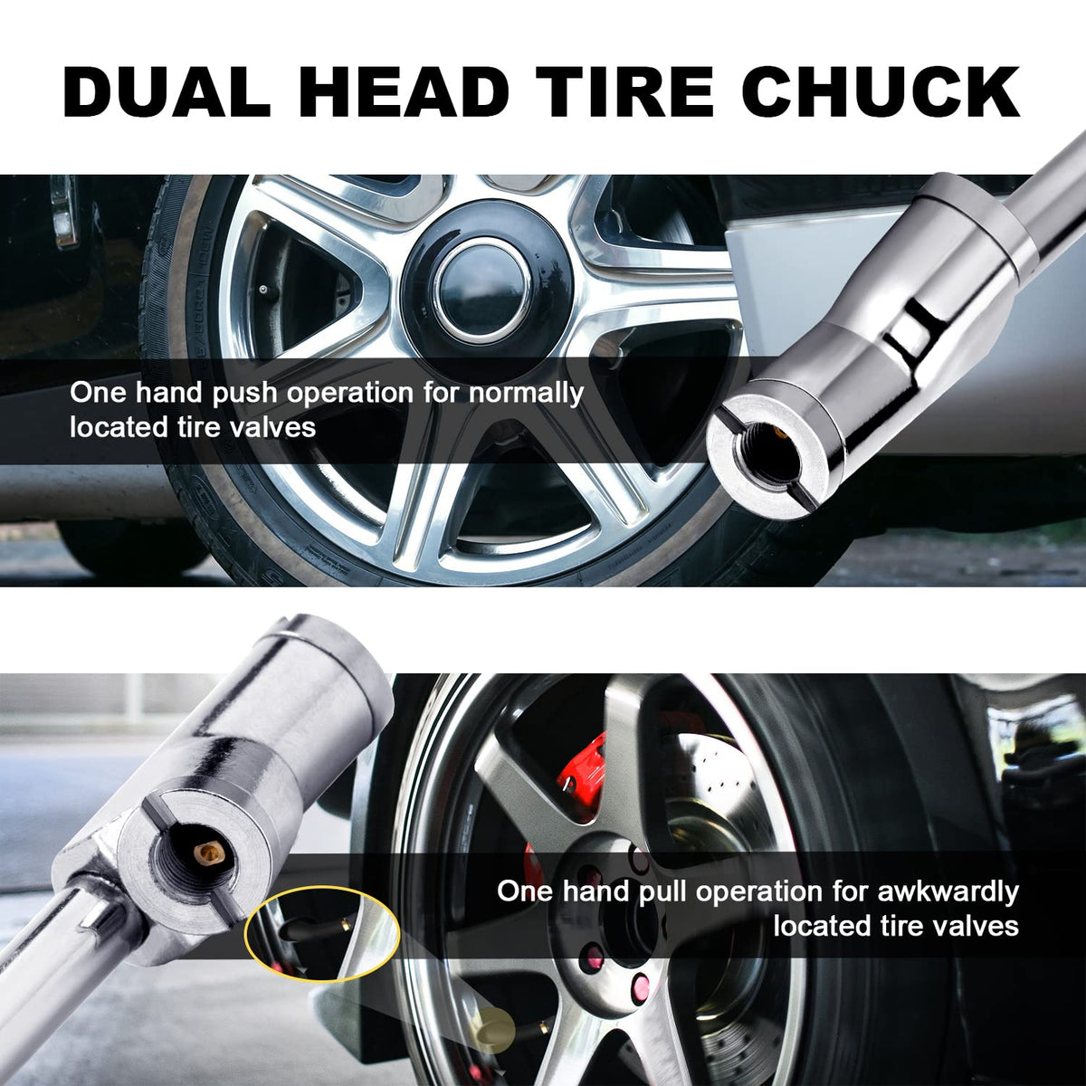 LUMITECO 2-Way Connection 13.8'' Extended Air Chuck Set, 1/4 in FNPT Straight Foot Dual Head Tire Inflate Chuck with Standard Qu