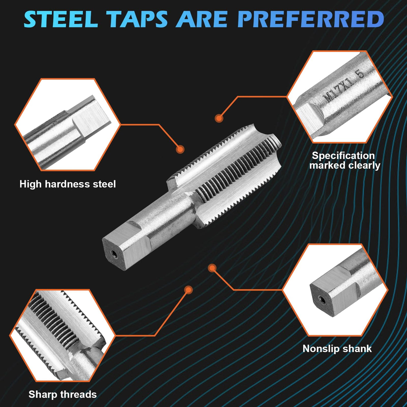 Q: What materials are used in the Luney drain plug repair tools?A: The Luney repair tools are made from high hardness steel, ensuring durability and wear resistance. Additionally, they undergo a rust prevention process, providing long-lasting performance and reliability.
