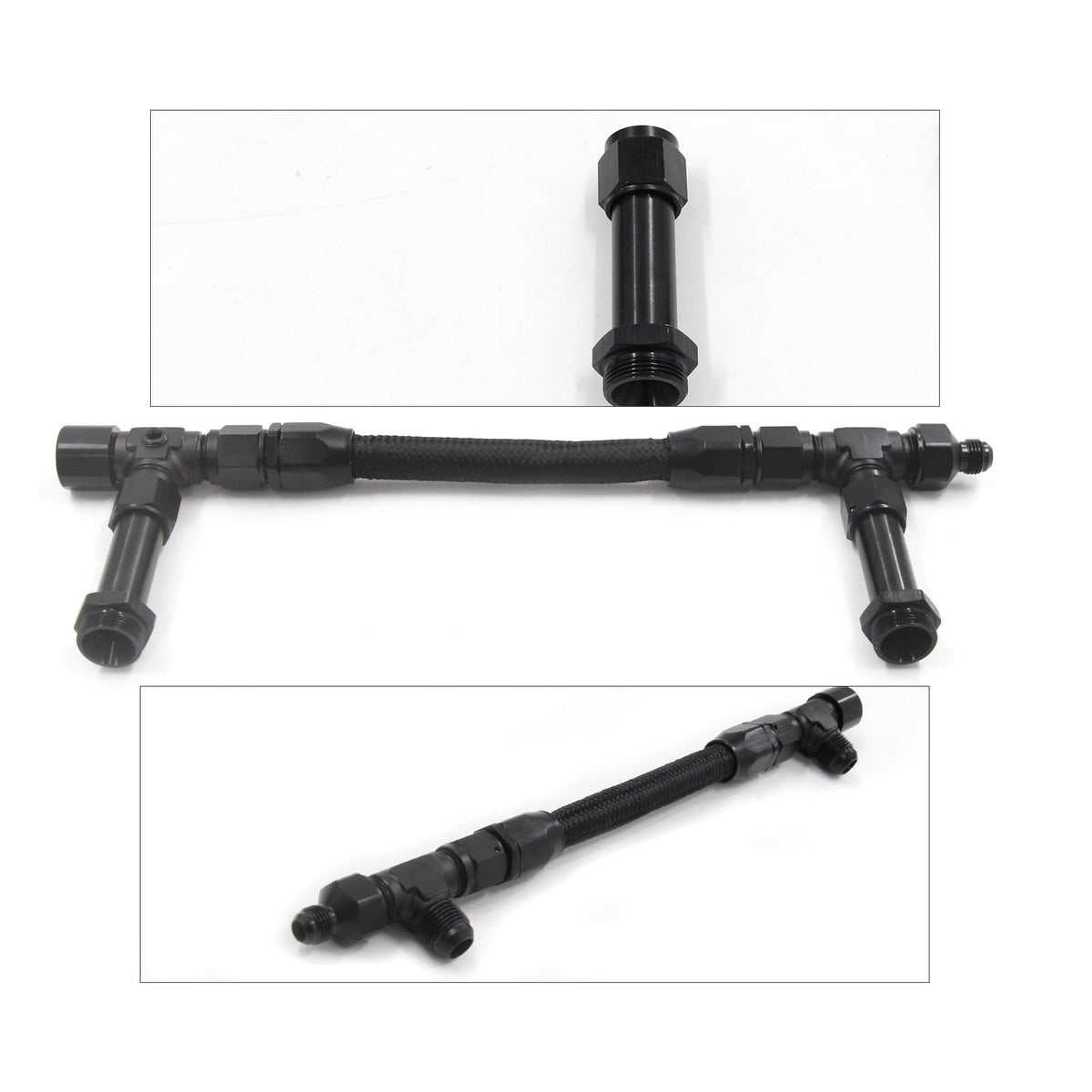 LVOUP 4150 Carburetor Fuel Line Kit 8AN Dual Feed Fuel Line to 7/8 Braided Dual Inlet Fuel Line Kit for Holley Black