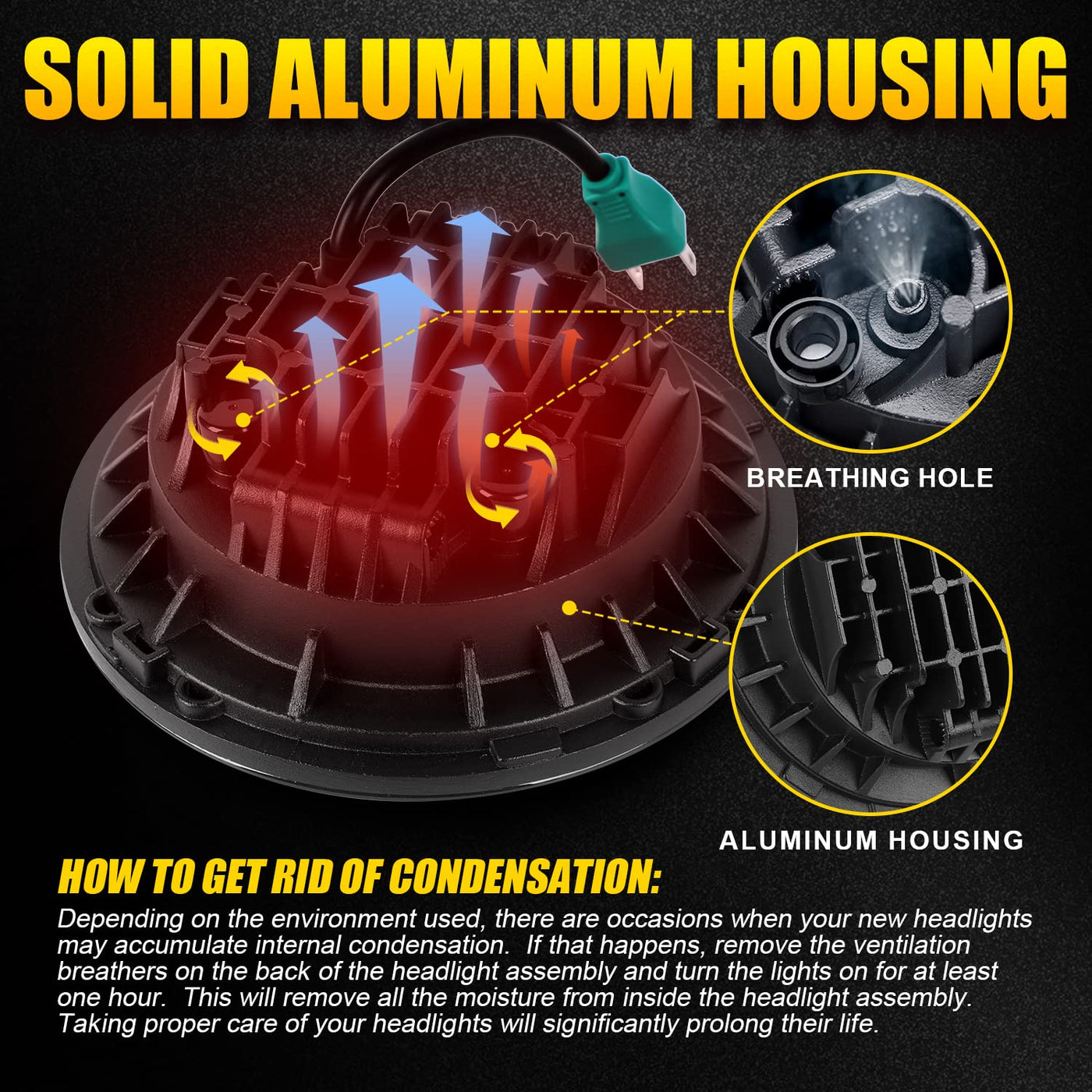 Specifications: Power:90W Voltage: Dc 12V Lumens: 4500Lm/Pcs (High Beam) &Amp; 3200Lm/Pcs (Low Beam) Dimension: 7 &Quot; Unch Dia. Led Chip: Us High Intensity Led Chips Low Power Consumption, Life Span: 50000Hrs. Plug &Amp; Play, H4/H13 Adapter Included Certifications: Dot, Ce, Rohs, Iso9002, Ip67 Application: Compatible With 07- '18 Jeep Wrangler Unlimited Jk 4 Door Compatible With 07- '18 Jeep Wrangler Jk 2 Doorcompatible With Jeep Wrangler Jl 2018~2019 (Need Add Bracket:B07Kyhbyf5 ) Compatible With 04- '06 Jeep Wrangler Lj Unlimited Compatible With 97-06 Jeep Wrangler Tj Compatible With 81- '85 Jeep Cj-8 Scrambler Compatible With 76- '86 Jeep Cj-7Compatible With 92- '01 Am General Humer Compatible With 03- '09 Humer H1 &Amp; H2Compatible With Lan Rover Defender 90 And 110 Compatible With Am General Humer (1992~2001) Humer H1 And H2 (2003~2009)(Humer H2 Needs Extra 9007 Male To H4 Female Adapter, Package Not Included) Package Included: 2Pcs 7&Quot; Inch Round Led Headlights 2Pcs H4-H13 Adapter Note: There Are Small Part Of Jeep Jk,Their Passenger Side Housing Is A Little Different From Driver Side Housing,But Both Our Headlights Are Exactly Same,So It May Require A Little Modification On The Back Of Headlight Or Housing.