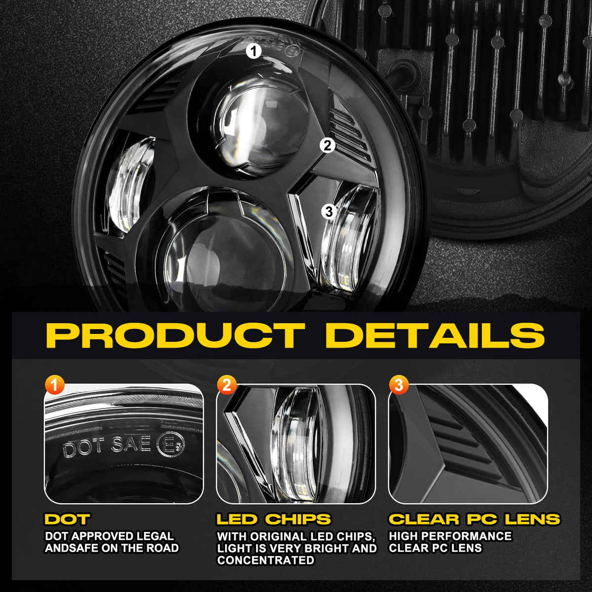 Q: How bright is the LX-LIGHT 51W LED headlight compared to standard headlights?A: This headlight boasts 51W of power, delivering 3500 lumens on high beam and 2000 lumens on low beam, providing 300% more brightness than ordinary 5.75 inch LED headlights, making it an excellent choice for enhanced visibility.