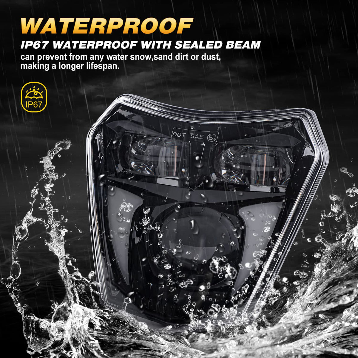 Lx-Light 65W Led Headlight Hi/Lo Beam Drl Compatible With Dirt Bikes Enduro Motorcycle Pit Bike Atv Tc Fe Te Exc Xcw Sxf Sx 125 250 300 350 450 500 530 Smc R 690 Supermoto