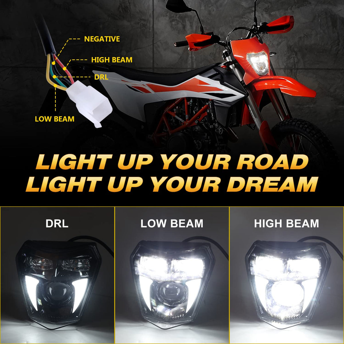 LX-LIGHT 65W LED Headlight Hi/Lo Beam DRL Compatible with Dirt Bikes Off Road XC SX SX-F SXF EXC EXC-F Dirt Pit Bike ATV