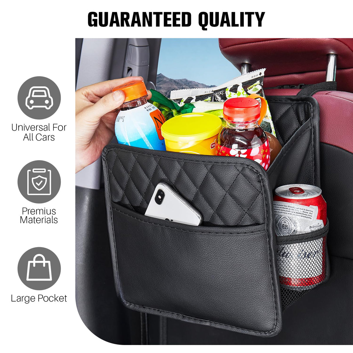 Car Organizer Back Seat,Hanging Car Storage Bag,Multi-Pocket Automotive Backseat Organizers and Storage Large Capacity Back of Seat Car Organizer This car back seat organizer is a must car travel accessories for kids, women and men.Car seat storage is perfect for long road trips, daily commutes, and even for keeping the backseat tidy when traveling with kids.. Designed with high-quality, waterproof, and durable soft Pu leather material, this back seat car organizer is designed to withstand everyday wear and tear, ensuring longevity and value for money. Keep your car interior neat, tidy, and clutter-free with our premium PU leather car seat storage organizer. Soft lining with a Elastic Band inside of the car seat storage bin to make the items you put in stable , don't worry about bumping into the body or the items fall out when you use. Universal Automotive Seat Back Organizer The car seat storage organizer is suitable for almost all car seats. The universal size car rear seat organizer can provide the perfect storage solution to keep your car tidy. This excellent car car storage organizer will bring you and your family a comfortable car trip. Car Storage Organizer Back Seat Specification: Size: 9.8x 9.8 x 5.5in Uses: car seat back organizer for Adults and Kids Applicable models: Compatible with most car models Cleaning method: Wipe with a towel Package includes: 1 x car seat organizer