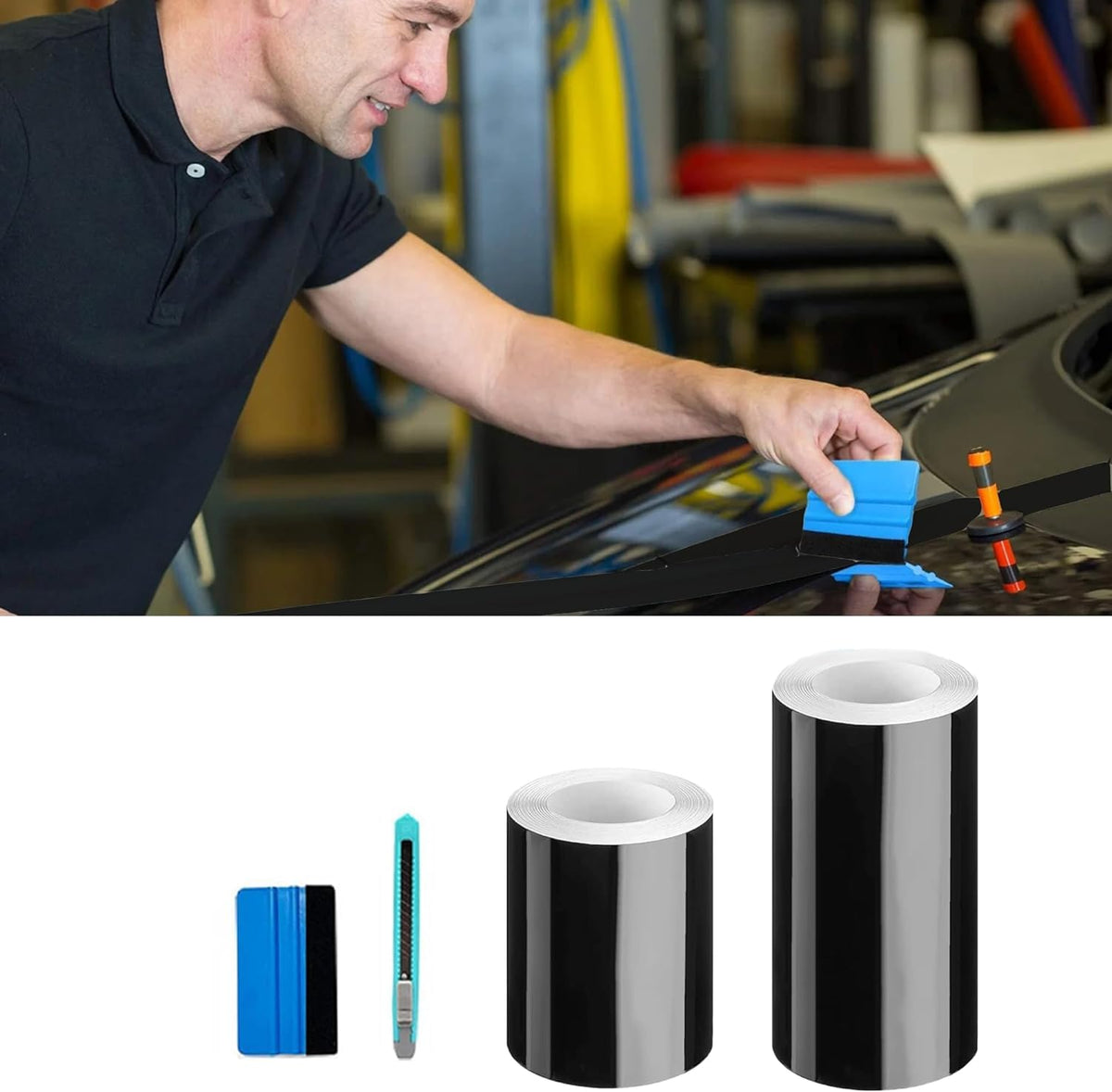 Lypumso High Gloss Black Vinyl Wrap Tape, 1 Inch X 30Ft Self-Adhesive Universal Chrome Black Detailing Tape With Tool, Anti-Scra