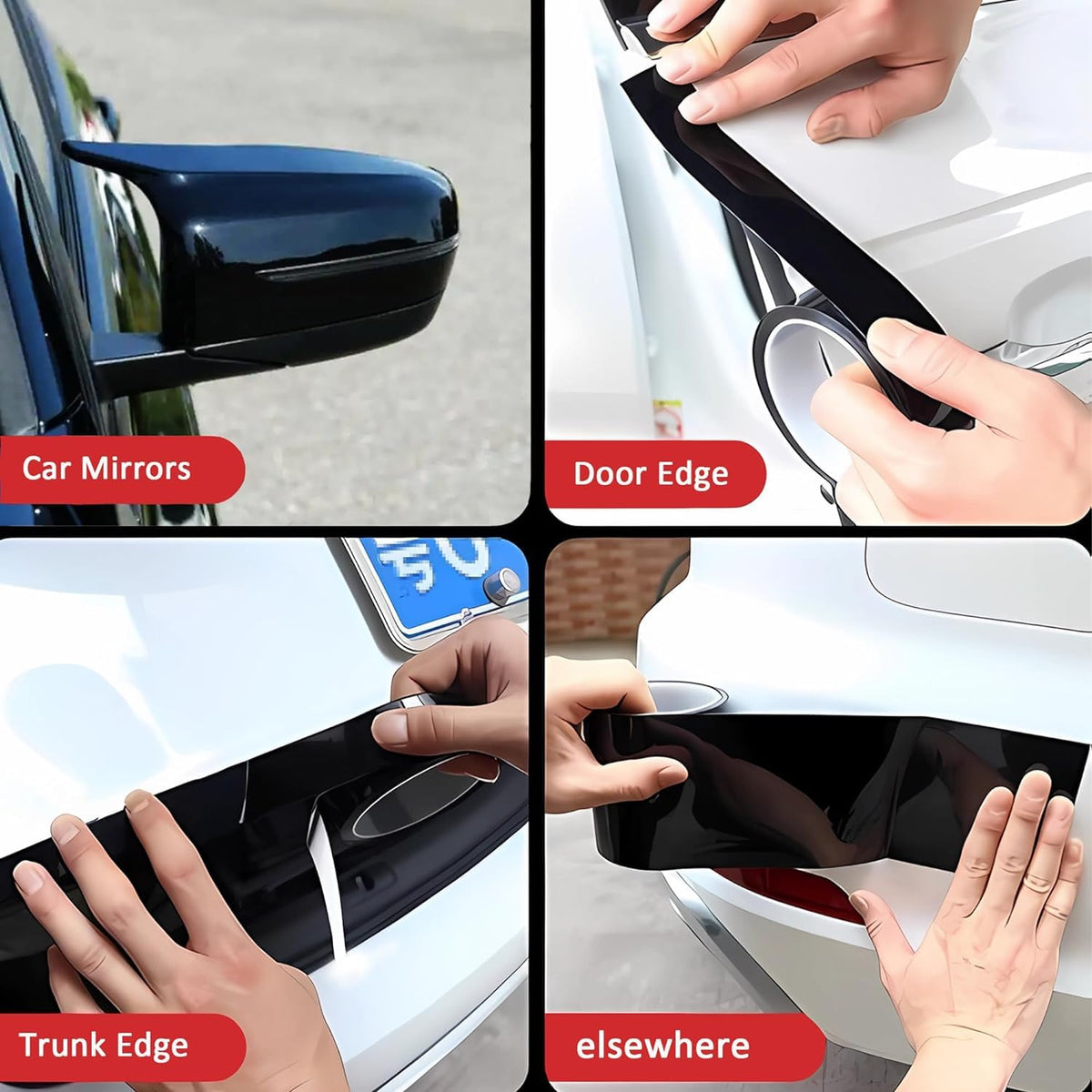 Lypumso High Gloss Black Vinyl Wrap Tape, 3 Inch X 30Ft Self-Adhesive Universal Chrome Black Detailing Tape With Tool, Anti-Scra