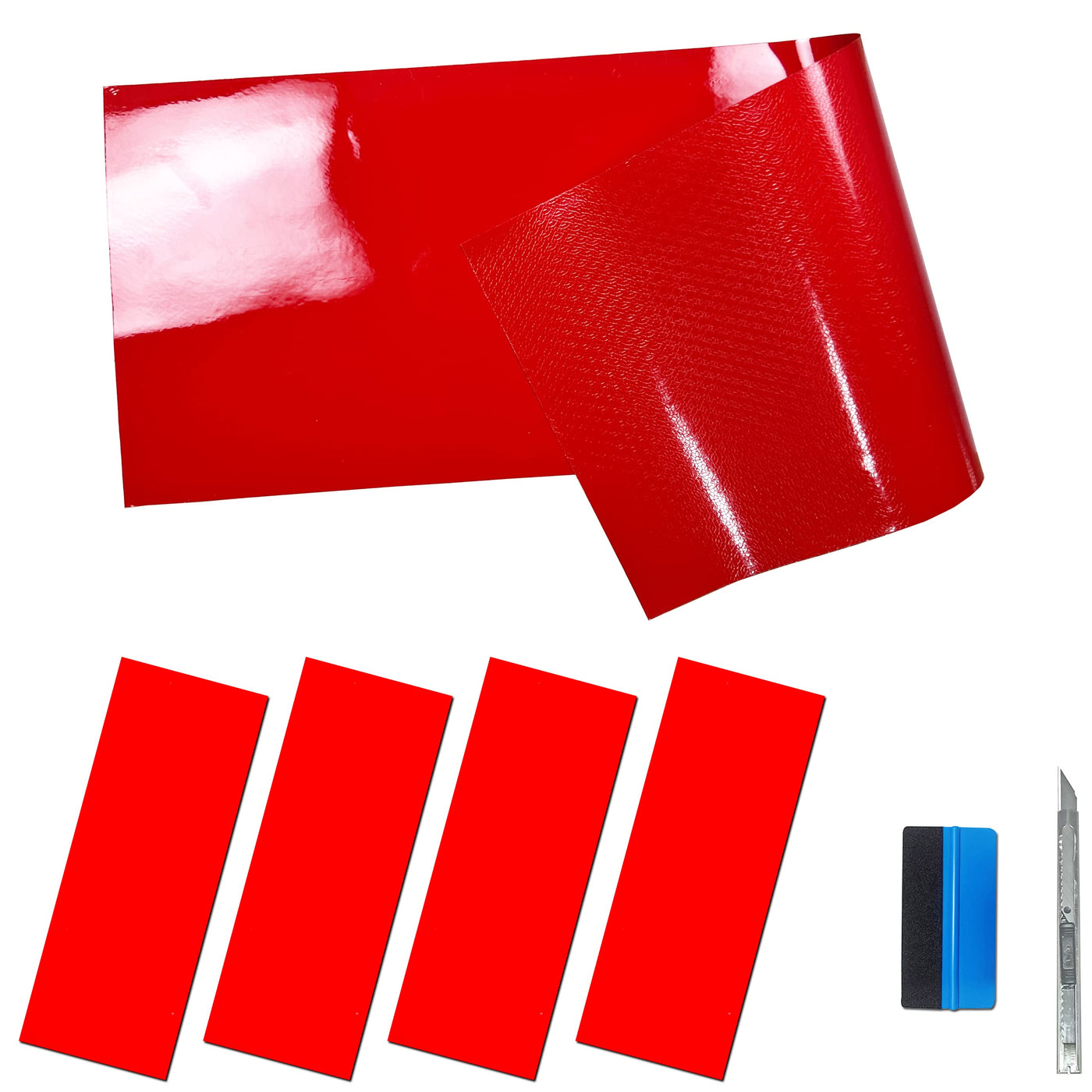 This car emblem wrap comes with a tool kit, including a squeegee and cutter, to aid in installation. It is repositionable and elastic, allowing for adjustments until the pattern is perfectly aligned. Then, use the cutter to trim the outline and use the squeegee to remove air bubbles. Thanks to the low-tack acrylic adhesive, the badge wrap is removable and won't damage the paint. If you are ready to replace it with a new sticker, it is easy to remove from the surface without leaving any residue. The dry application method is easier to handle on your own, and it is recommended to use a heat gun or hair dryer for shaping. Package include: vinyl wrap stickers size: 11.8 x 4 /30cm x10cm Package: 4x vinyl wrap stickers, 1x blue plastic squeegee, 1x knife